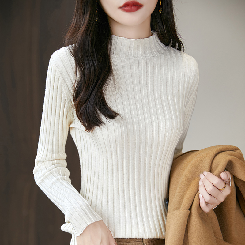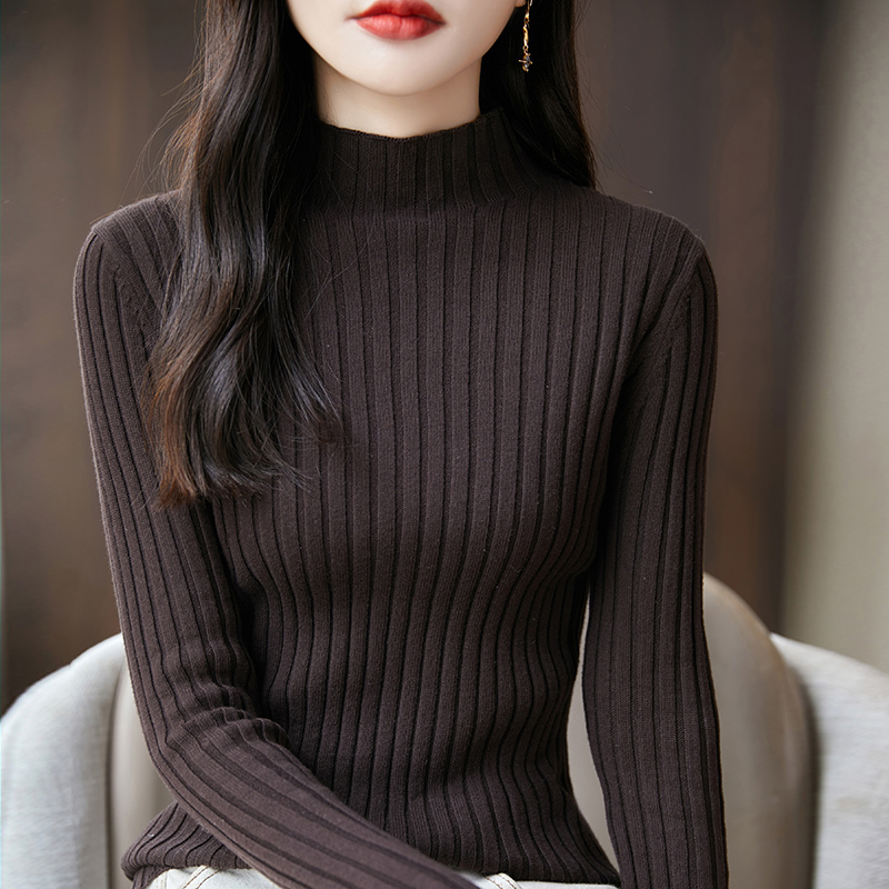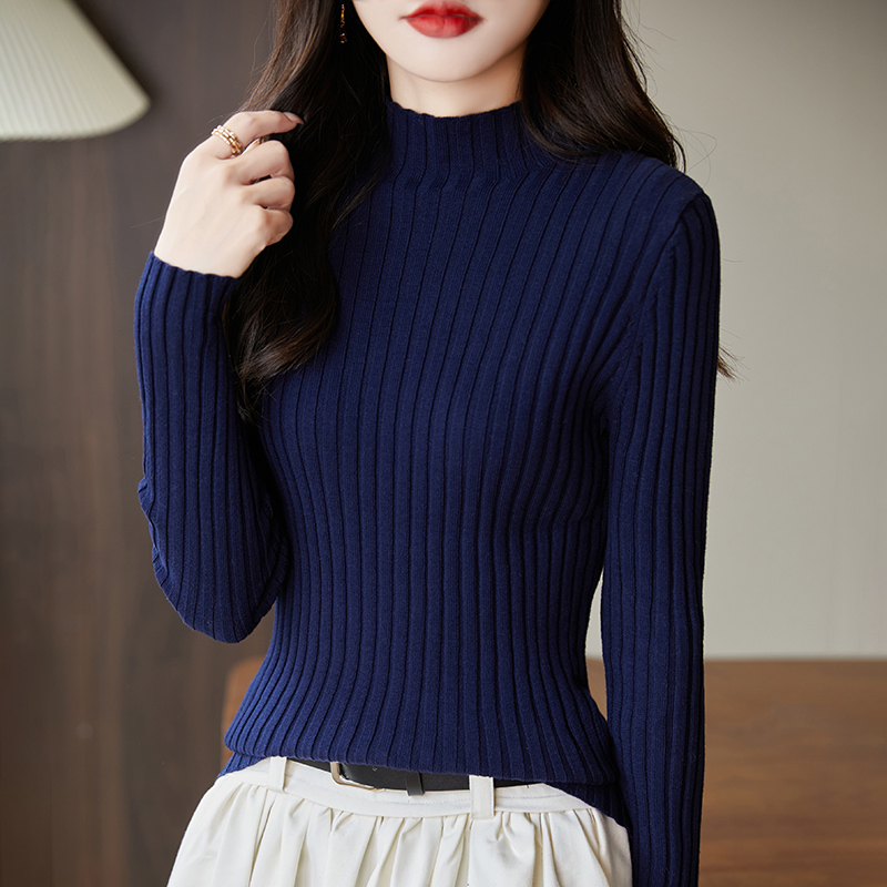 纯棉线半高领针织衫2025秋冬新款女修身内搭显瘦简约打底坑条毛衣