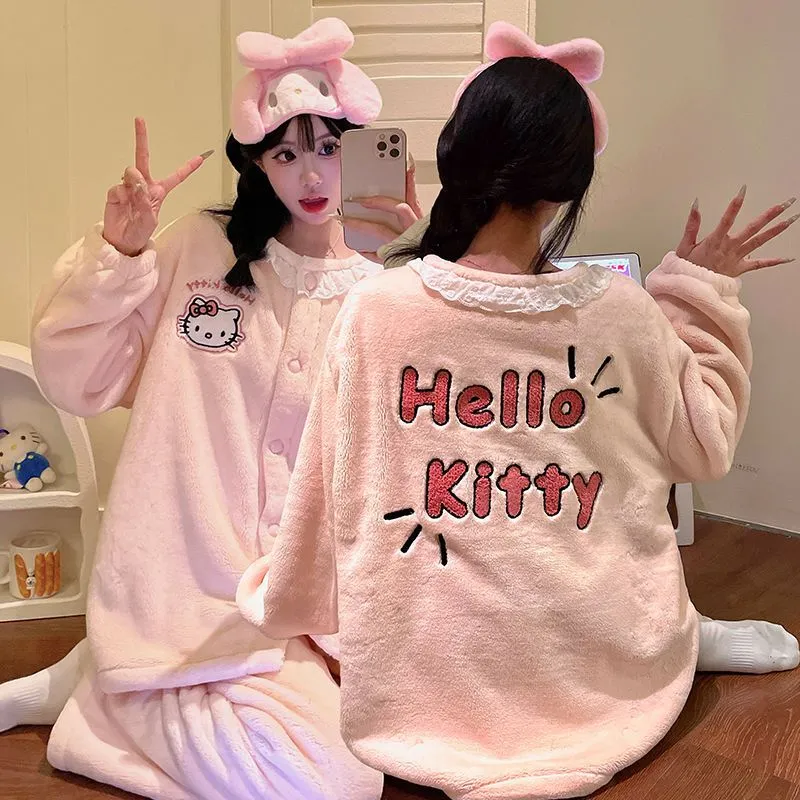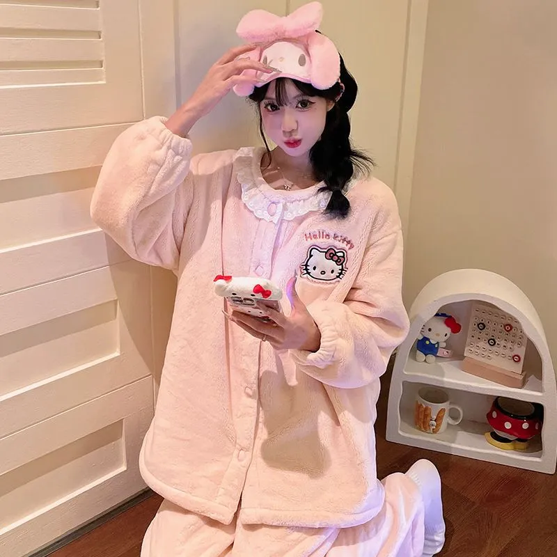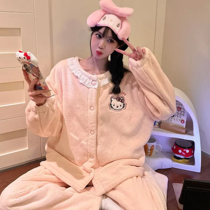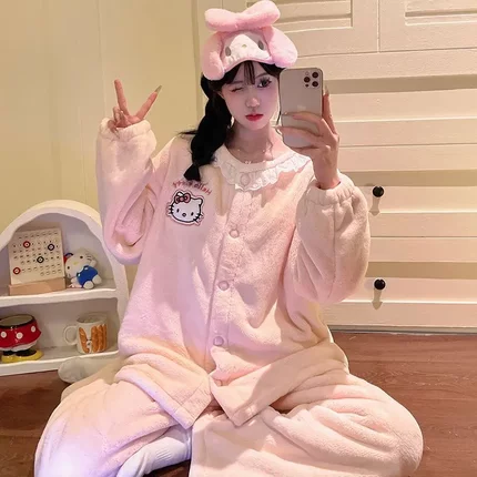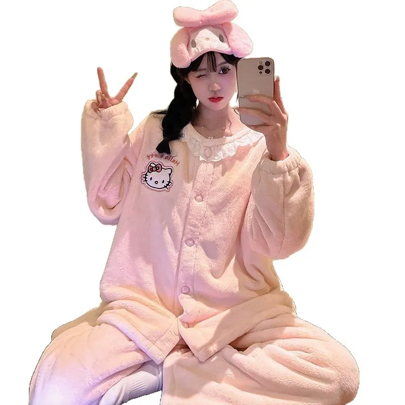 法兰绒睡衣女秋冬季可爱卡通公主风长袖加厚小个子女生家居服套装