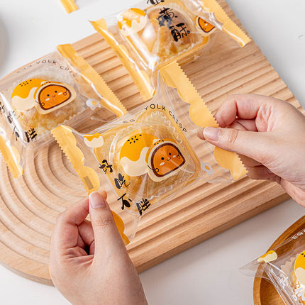 2024新款加厚蛋黄酥包装袋带底纸托烘焙饼干自封机封袋卡通