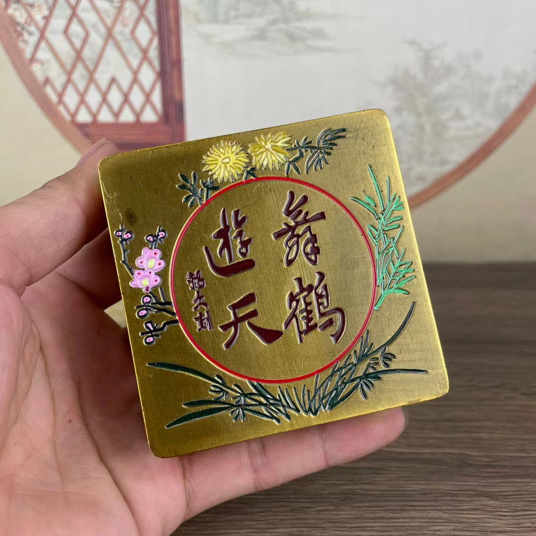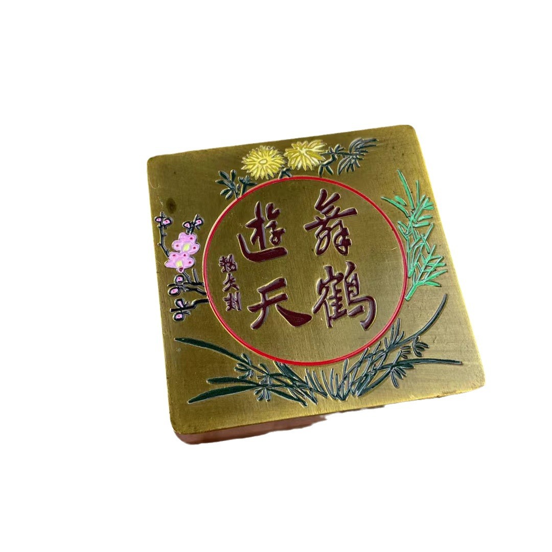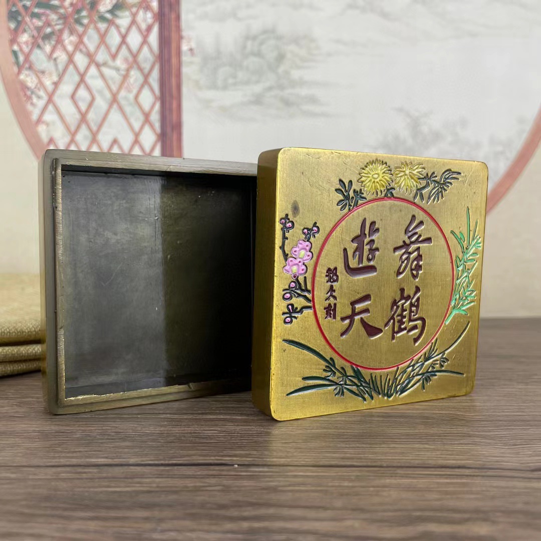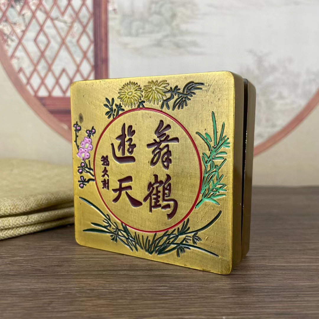 带盖方形墨盒文房四宝书法老铜全新墨匣仿古家居书房办公摆件