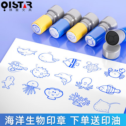 海洋动物儿童卡通印章手帐可爱章鱼鲨鱼海豚贝壳海星动物印章可爱宝宝幼儿园教学奖励盖章印泥鲸鱼螃蟹小章印