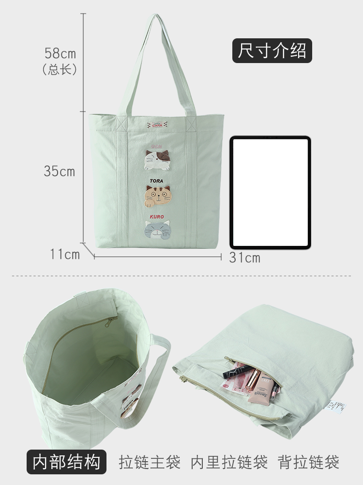 HIKOSEN CARA日本卡拉猫单肩包2018年新款纯色手提布艺斜挎帆布包