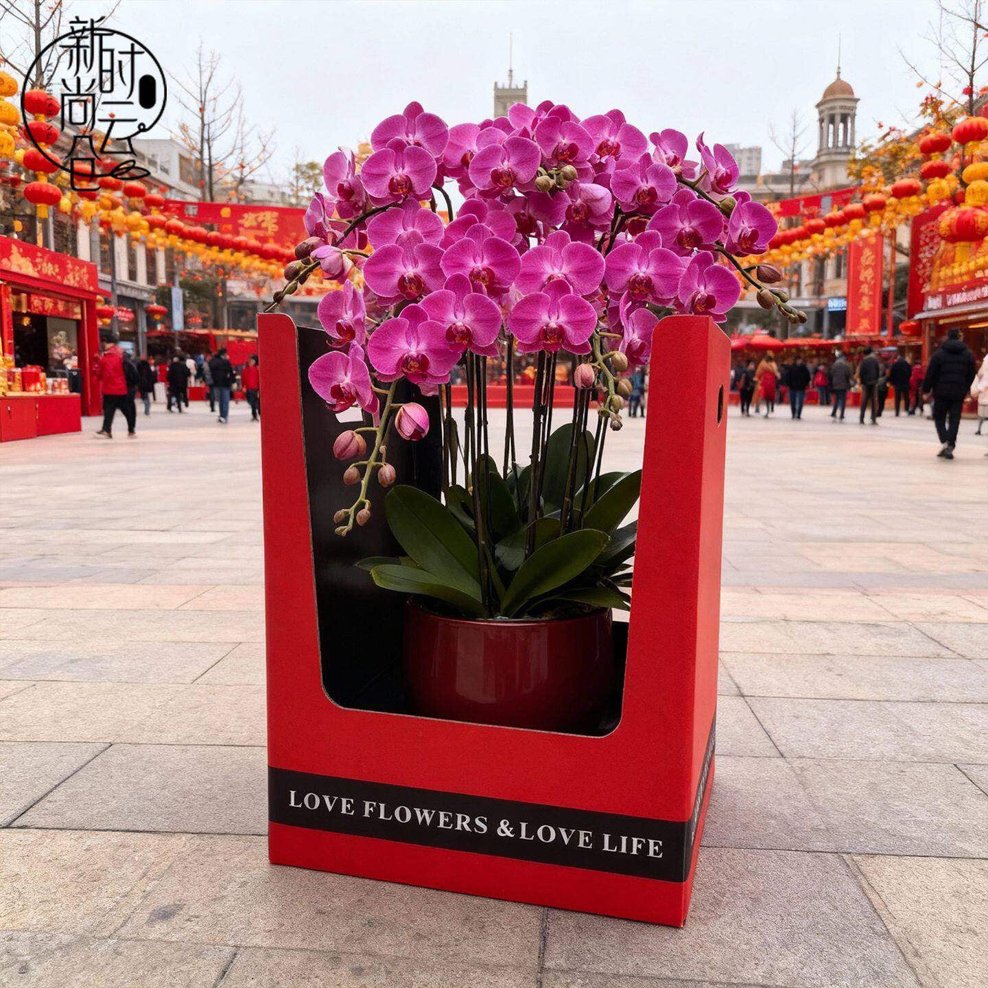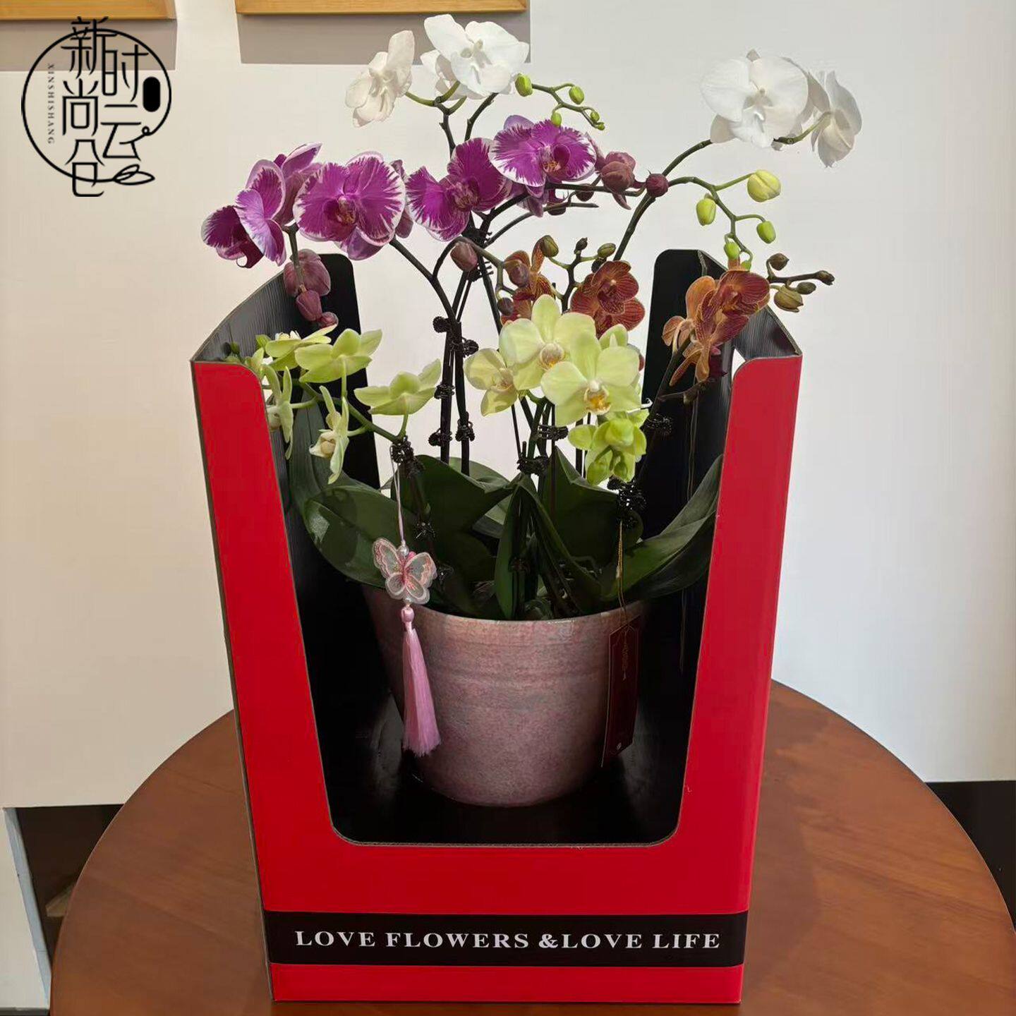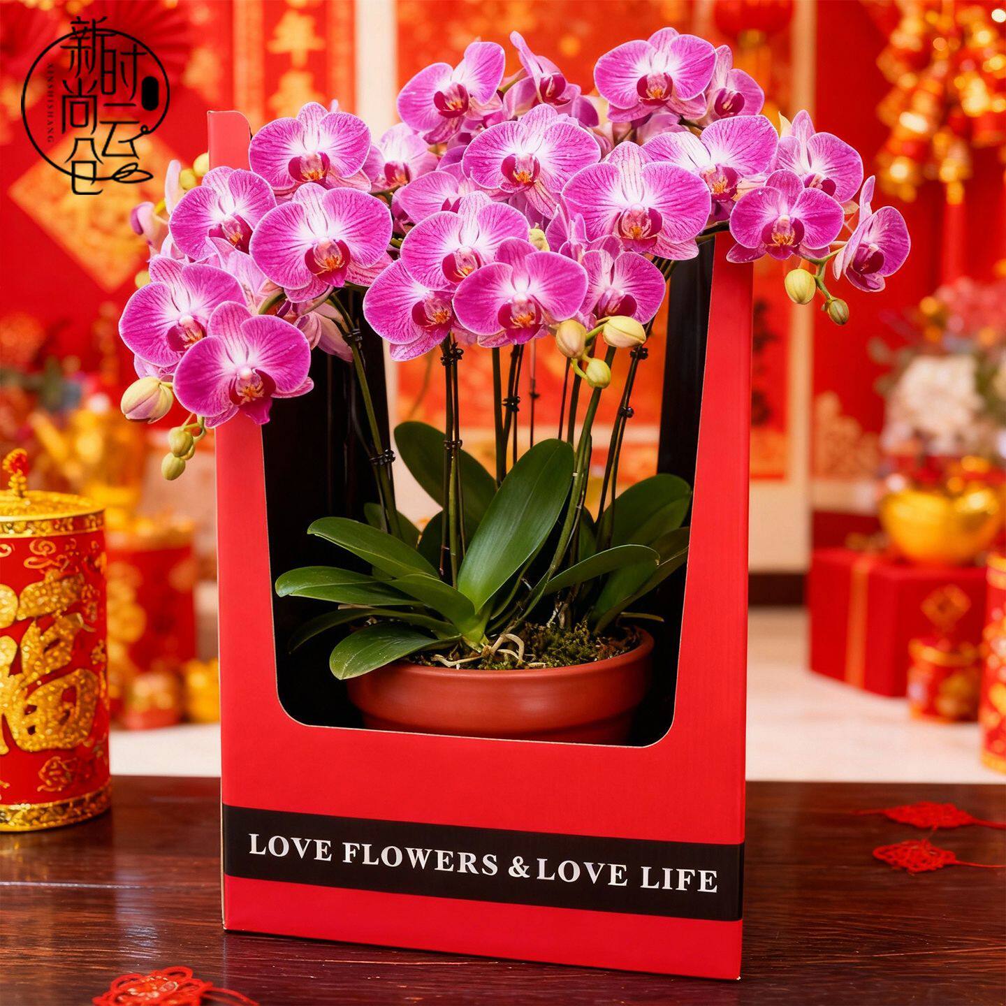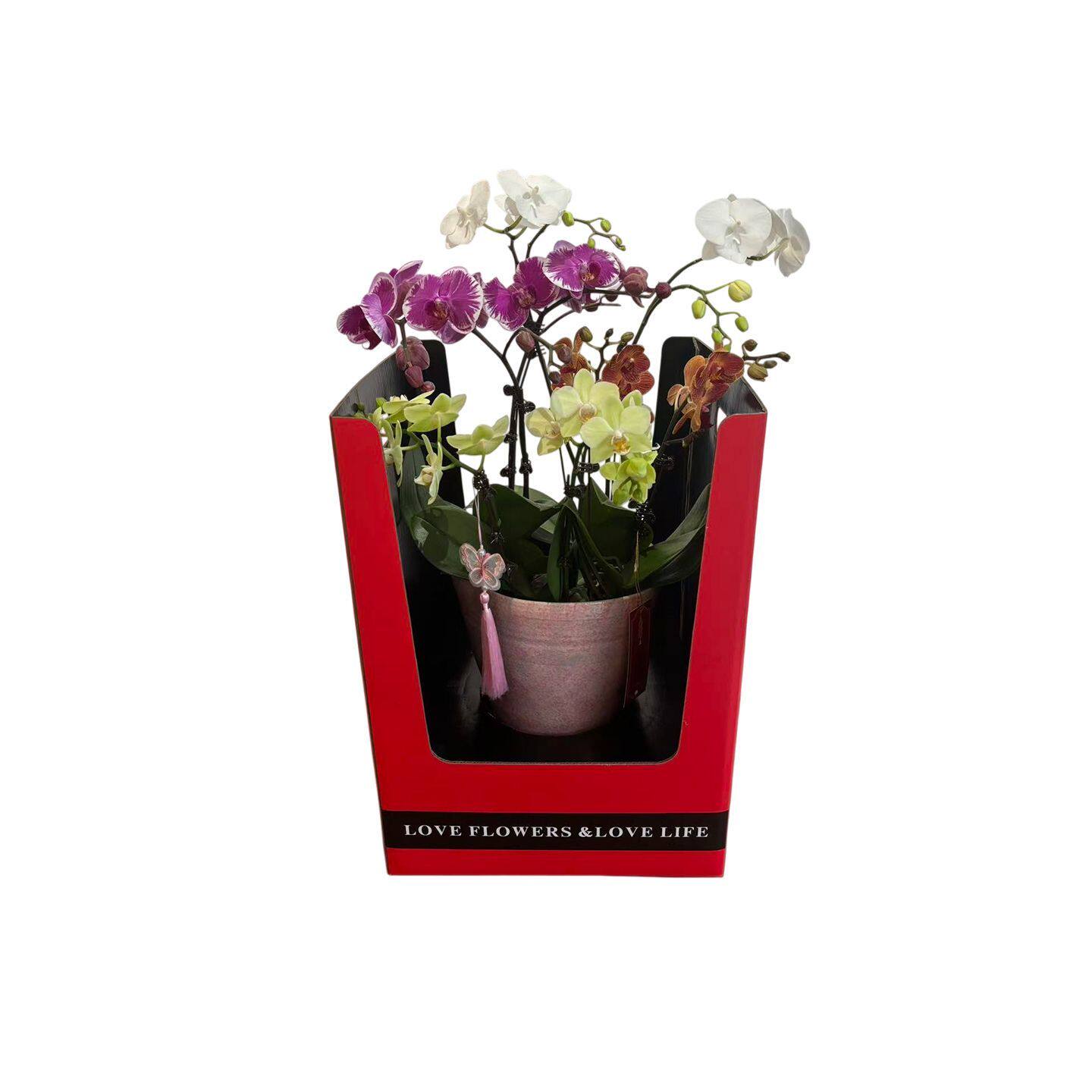 新年款喜庆双把手蝴蝶兰盆栽礼盒