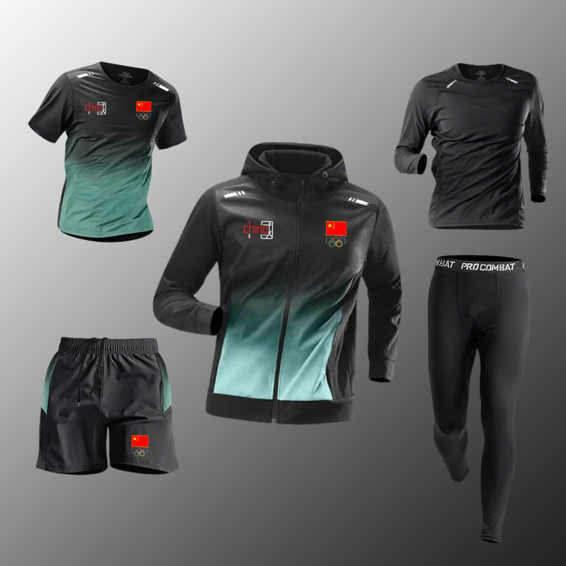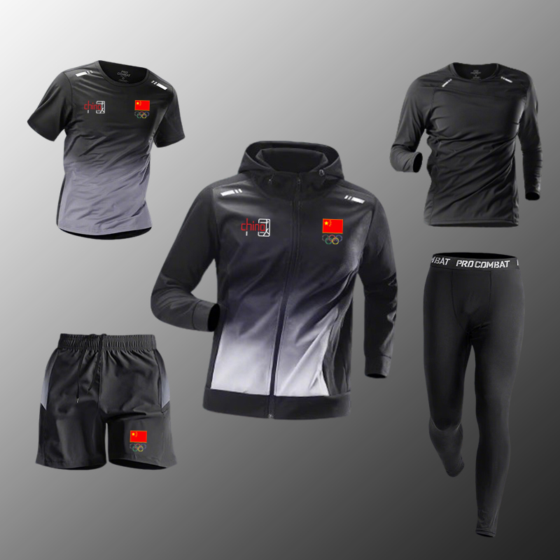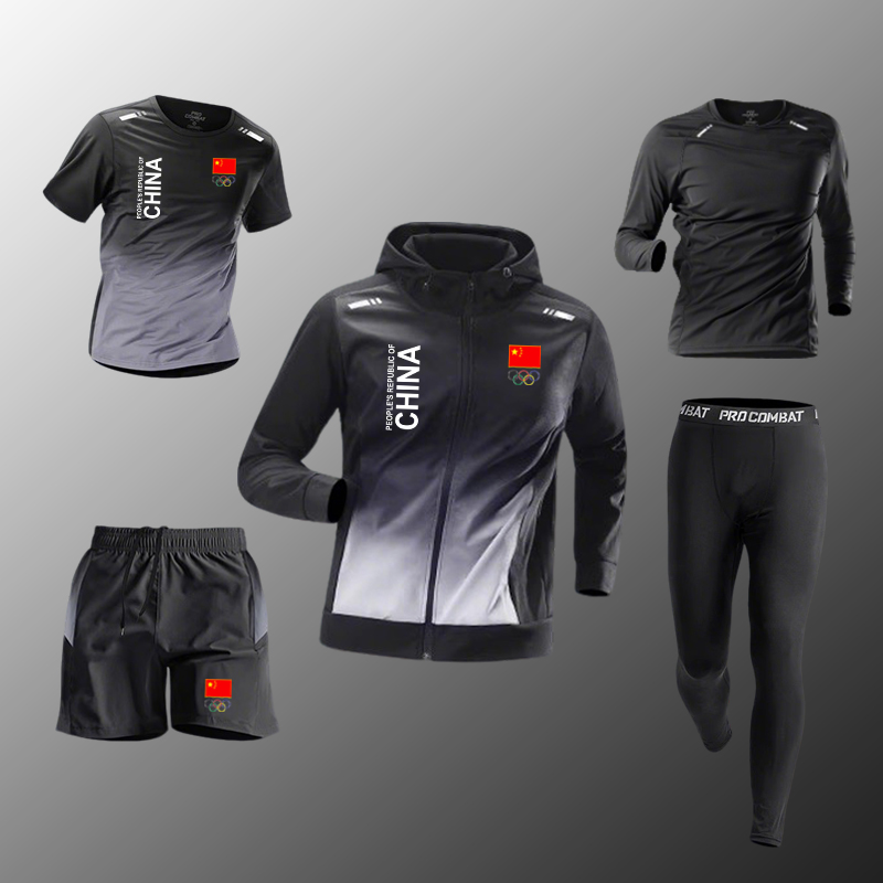 中国国家队运动套装男女春夏季跑步训练服健身房撸铁健身紧身衣服