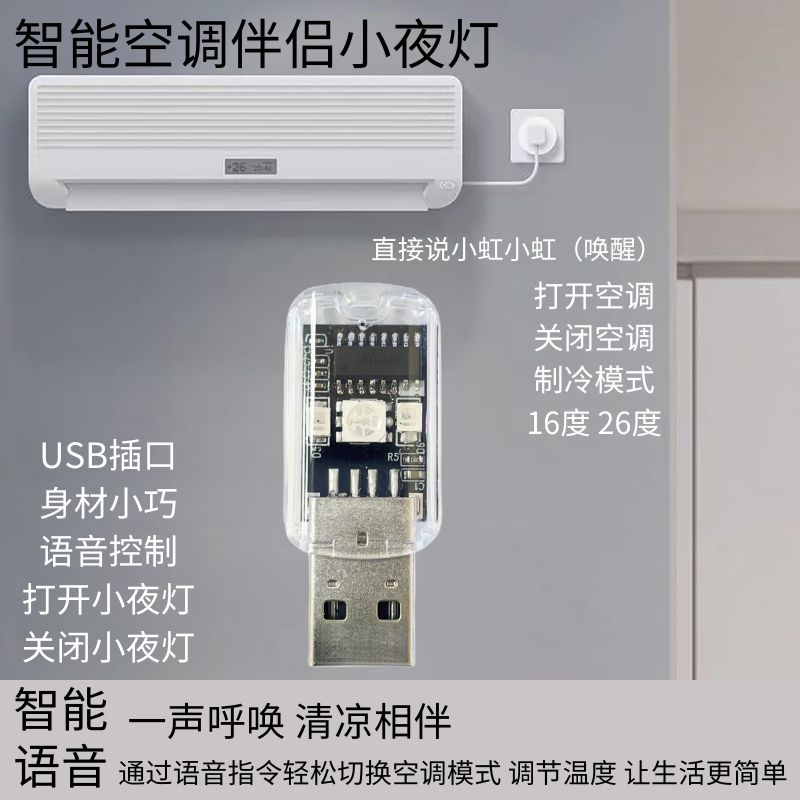 新款空调智能语音遥控器USB适用美的格力志高奥克斯夏普日立夜灯