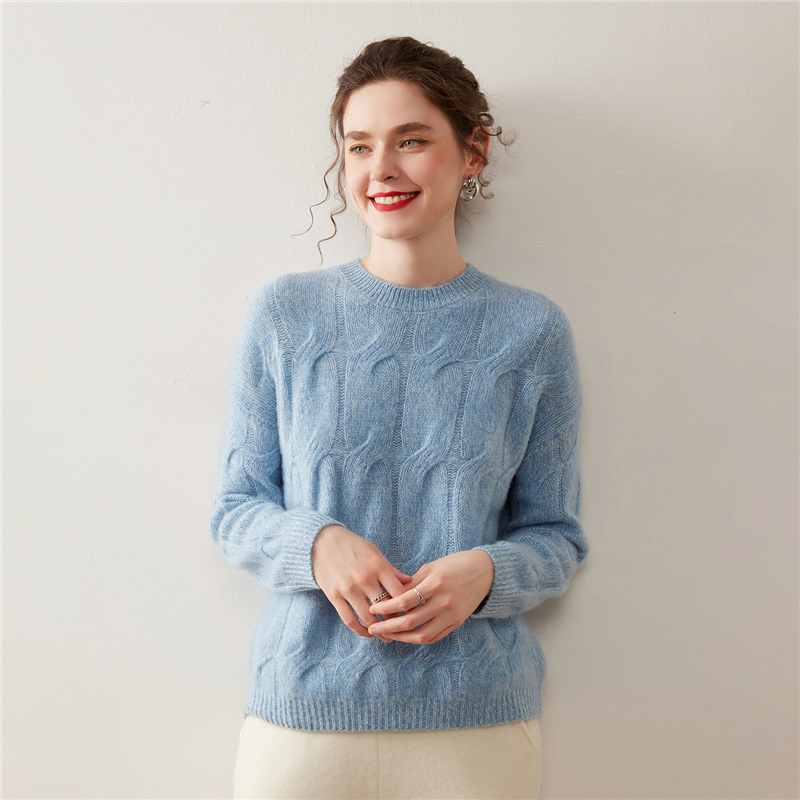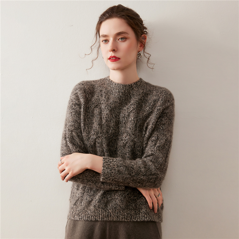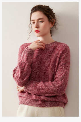 厚款大花纱绞花套头衫山羊绒针织套头衫女针织毛衣外套