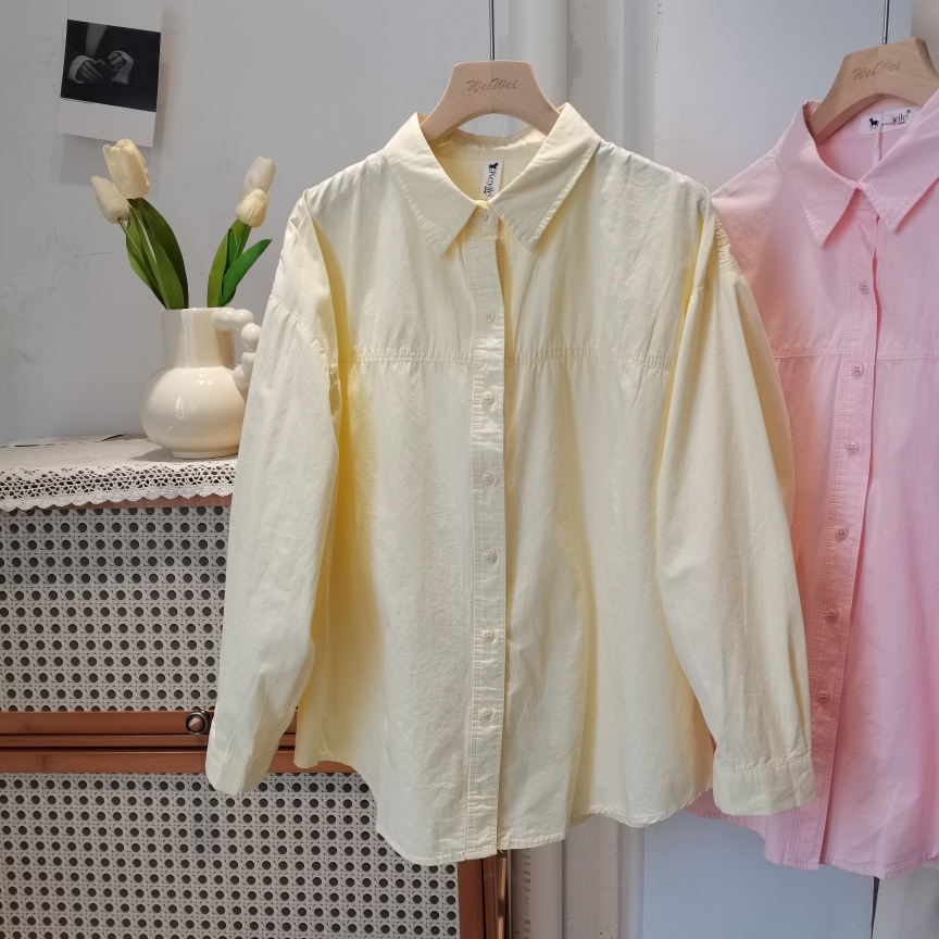 日系温柔风水洗全棉小众设计感后背纽扣粉色长袖衬衫女秋内搭衬衫