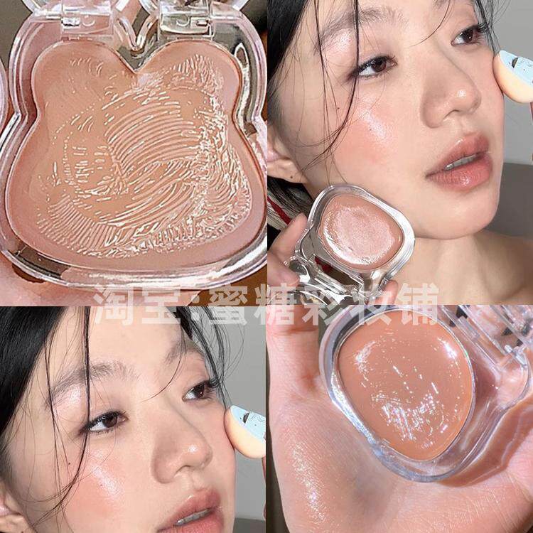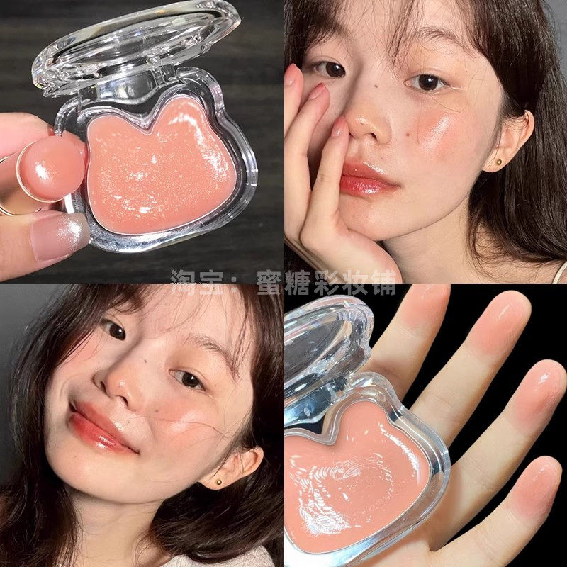 日杂水光无花果色!秋冬腮红膏小熊多用膏红苹果膨胀收缩色奶杏色