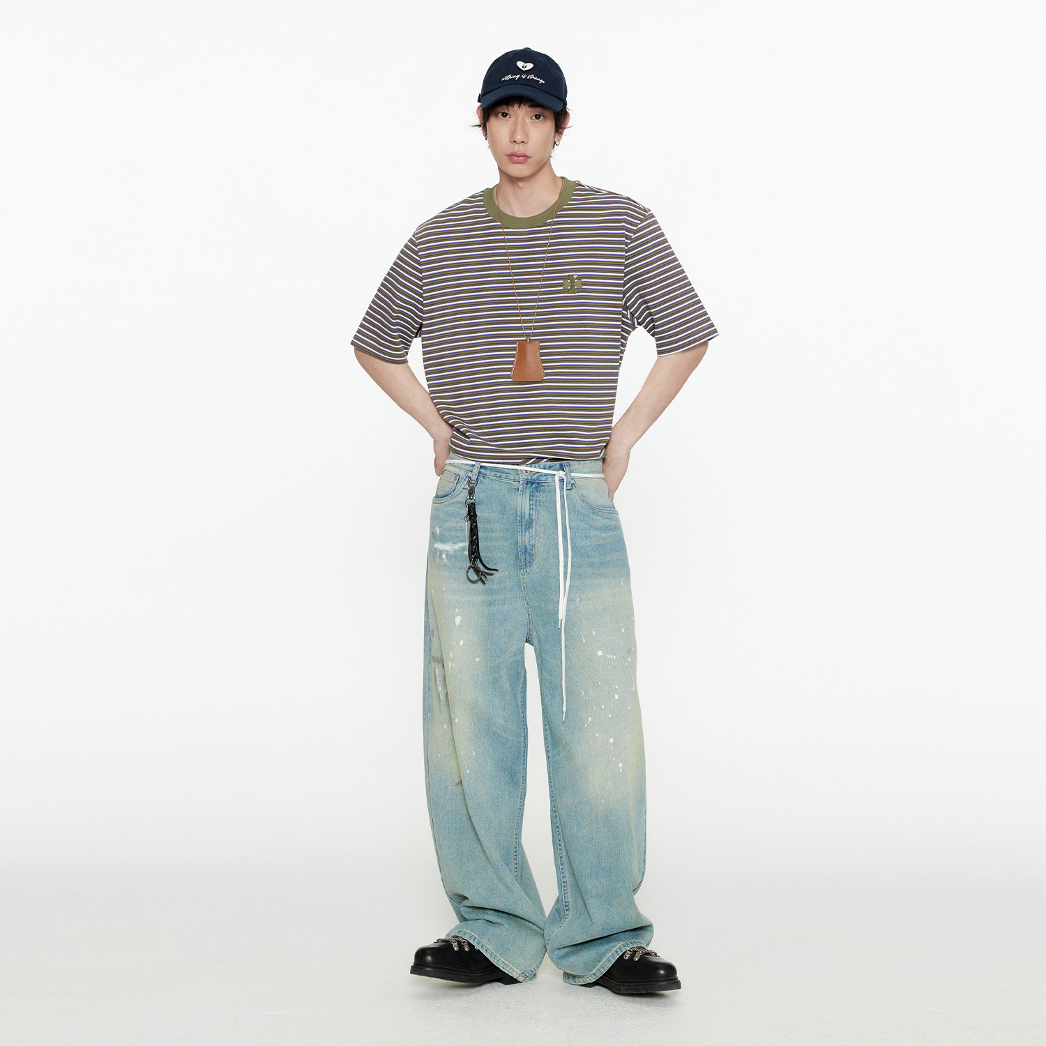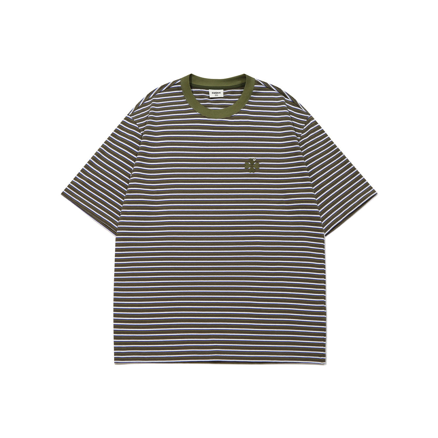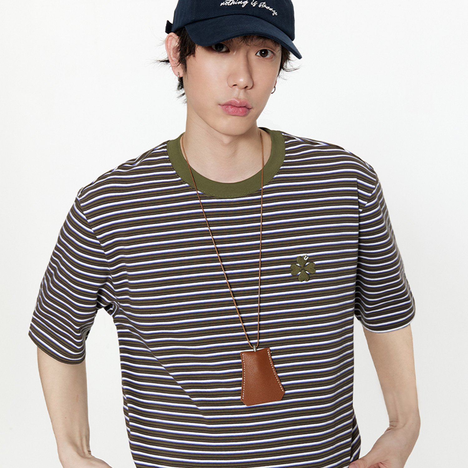 GUUKA爱心四叶草高克重纯棉T恤男夏重磅短袖正肩条纹半袖上衣合身