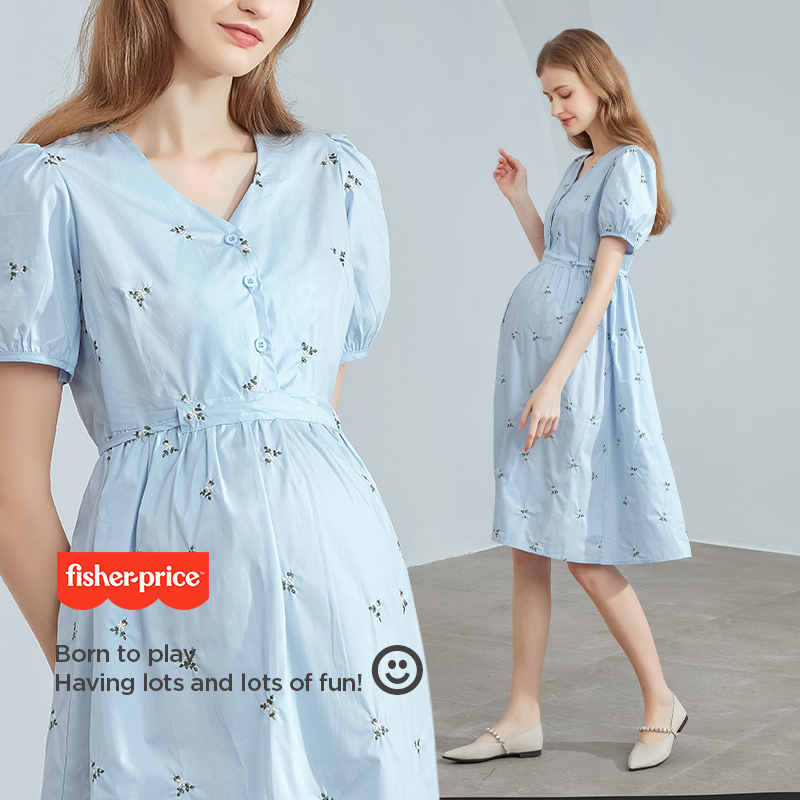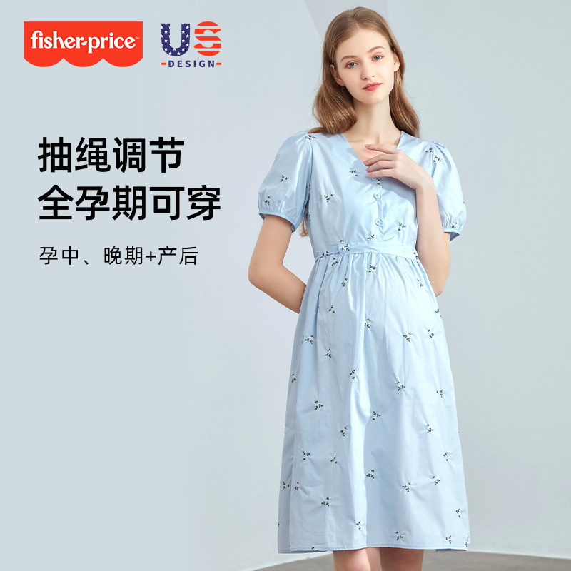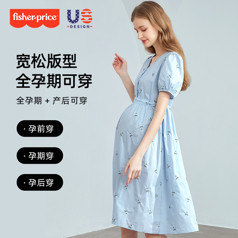 美国费雪孕妇连衣裙子夏装2025新款套装夏款上衣哺乳夏季孕妇装