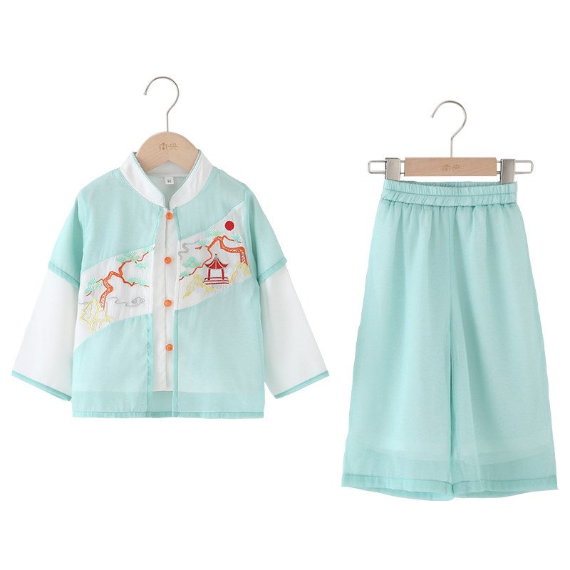 速发中国汉服男童古风春薄款儿童唐装民族风宝宝古装国学演出套装