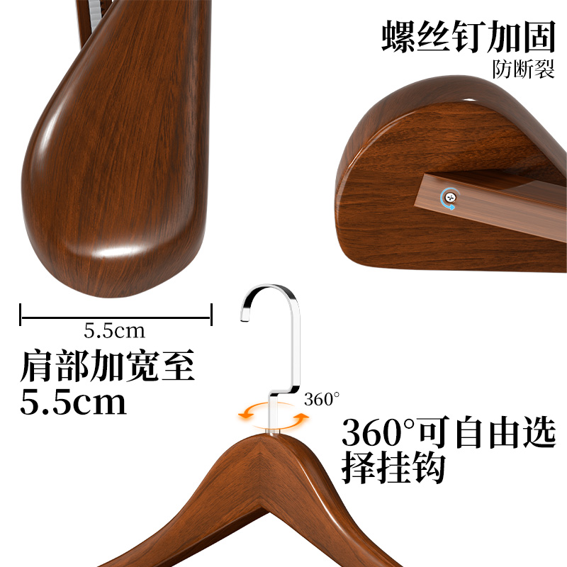 宽肩实木衣架家用挂衣无痕不鼓包西装大衣皮草木质防肩角酒店衣挂