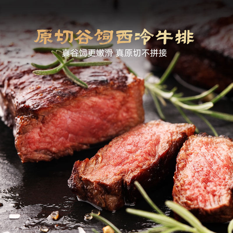 沣瑞食品澳洲安格斯谷饲西冷原切牛排无添加儿童牛排黑椒生鲜牛肉