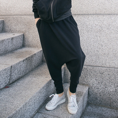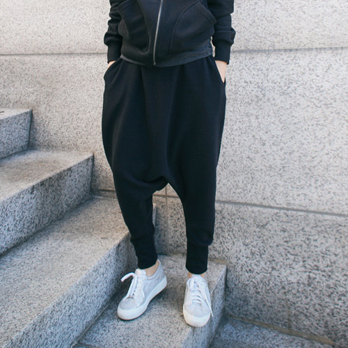 冬韩版加厚运动哈伦裤黑色加绒休闲小脚吊裆裤大裆低档哈伦女垮裤