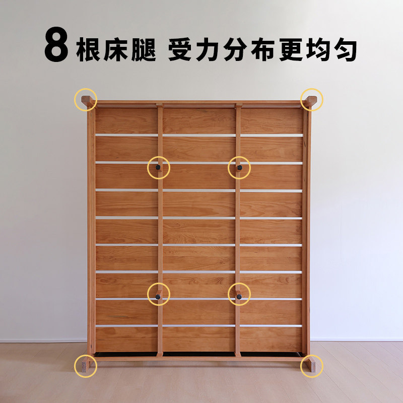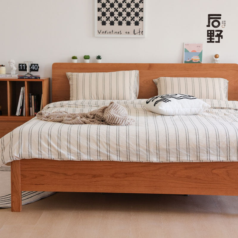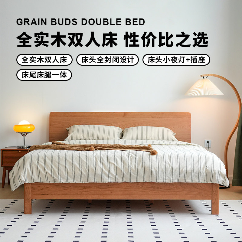 后野北欧实木床1.8米日式主卧樱桃木1.5小户型卧室原木双人床小满