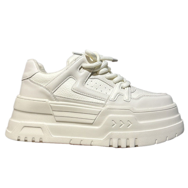 穿搭好货推荐~韩版春季新品真皮轻便松糕厚底鞋女小白鞋增高板鞋