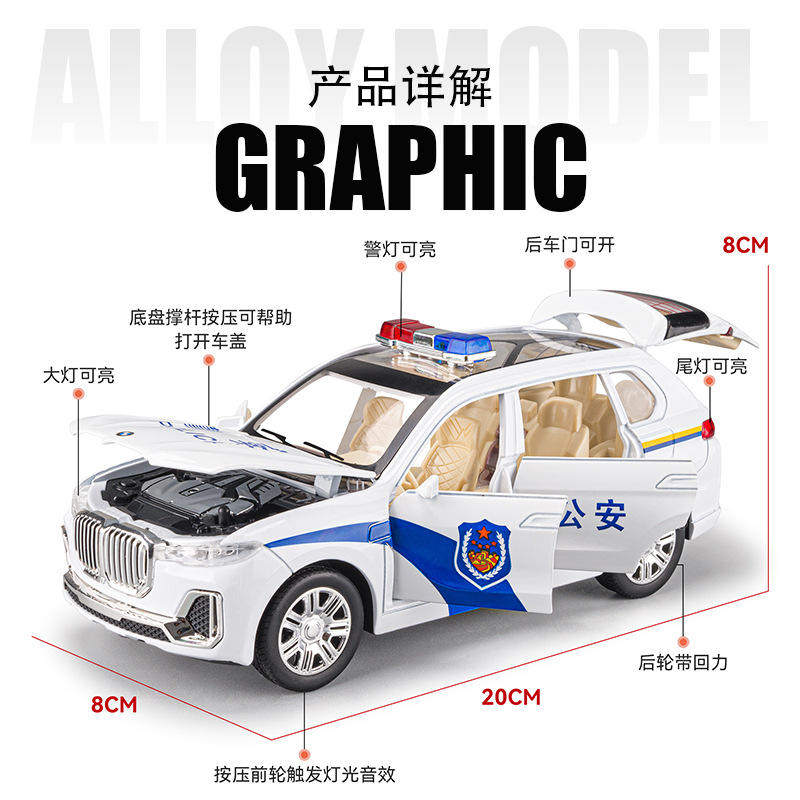 新款 1/24X7警车合金汽车模型音效城市特种公安车辆澄海超级产地