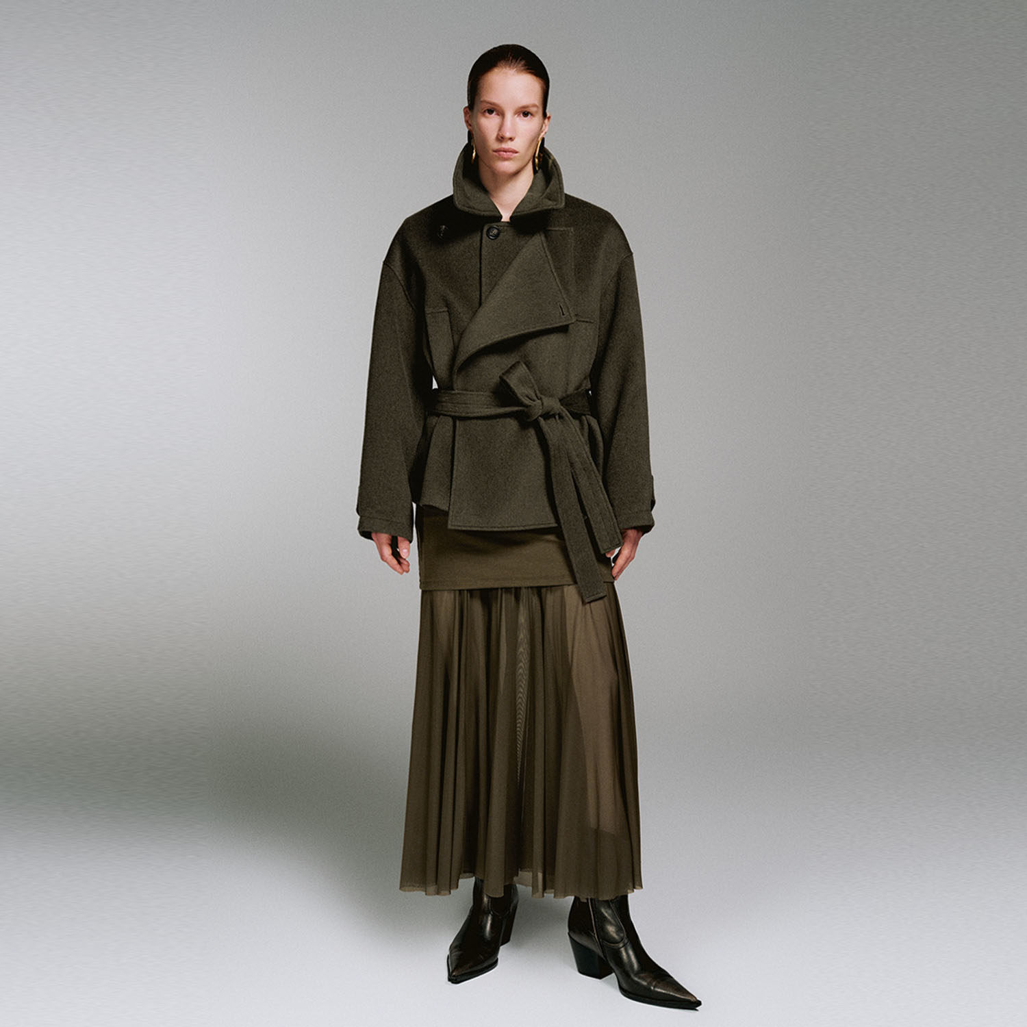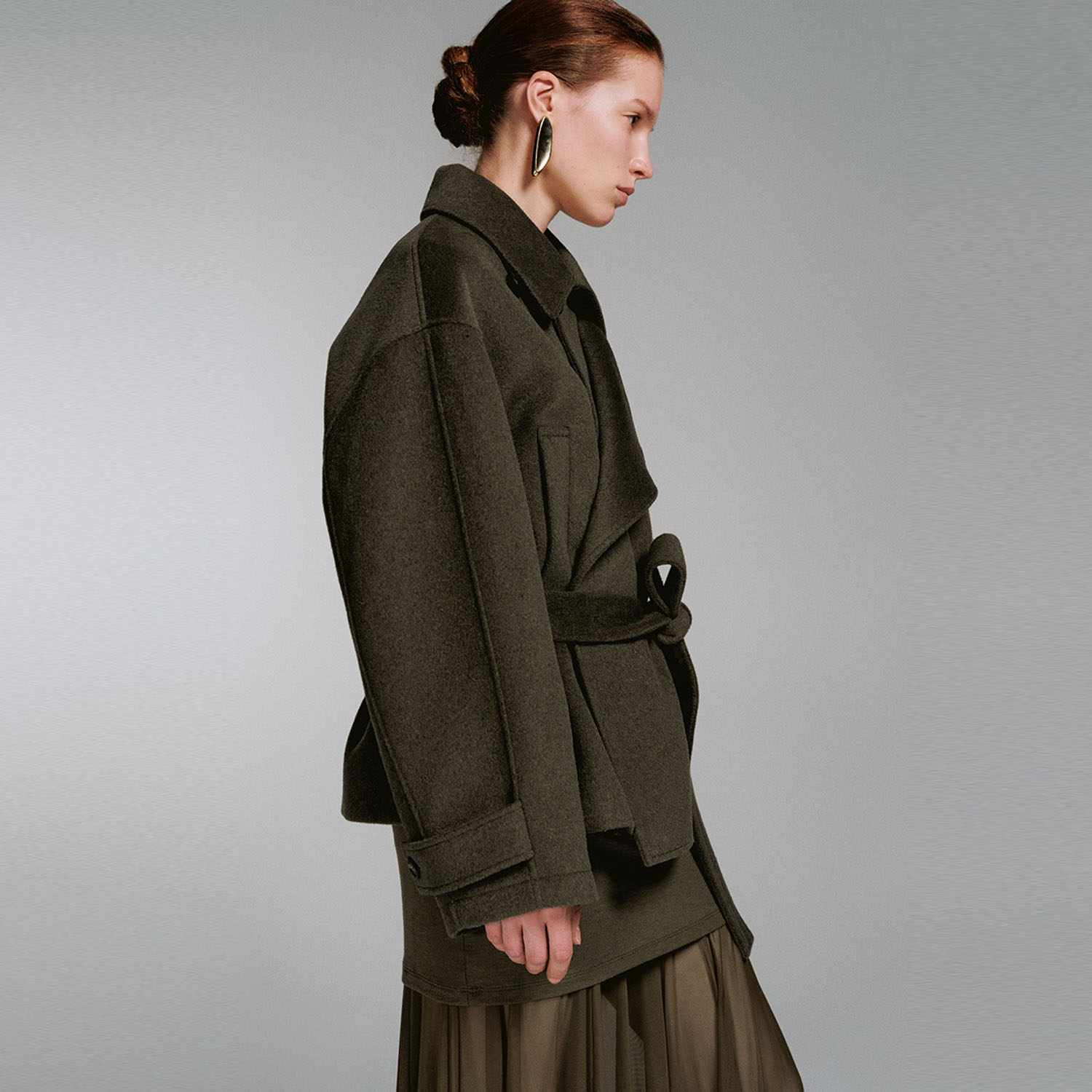 UR国内2025冬季女装琥珀流光风腰带含羊毛毛呢外套UWJ150112