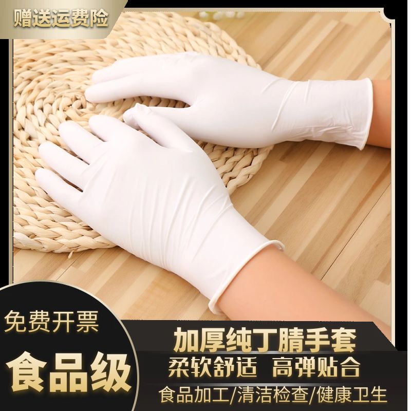 一次性手套丁腈白色加厚高弹食品级防水耐油乳胶检查水产加工专用