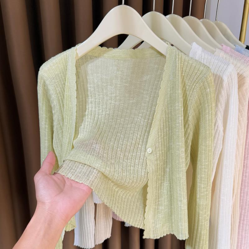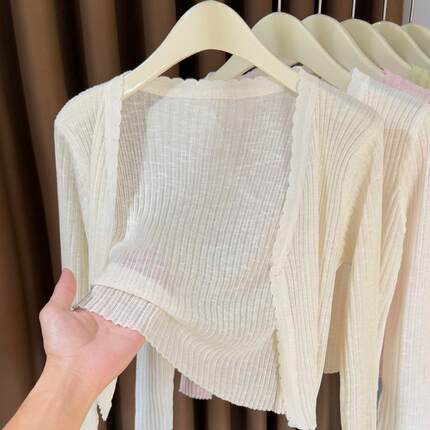 轻薄针织防晒开衫女夏季配吊带裙的外搭冰丝短款小披肩微透罩衫女