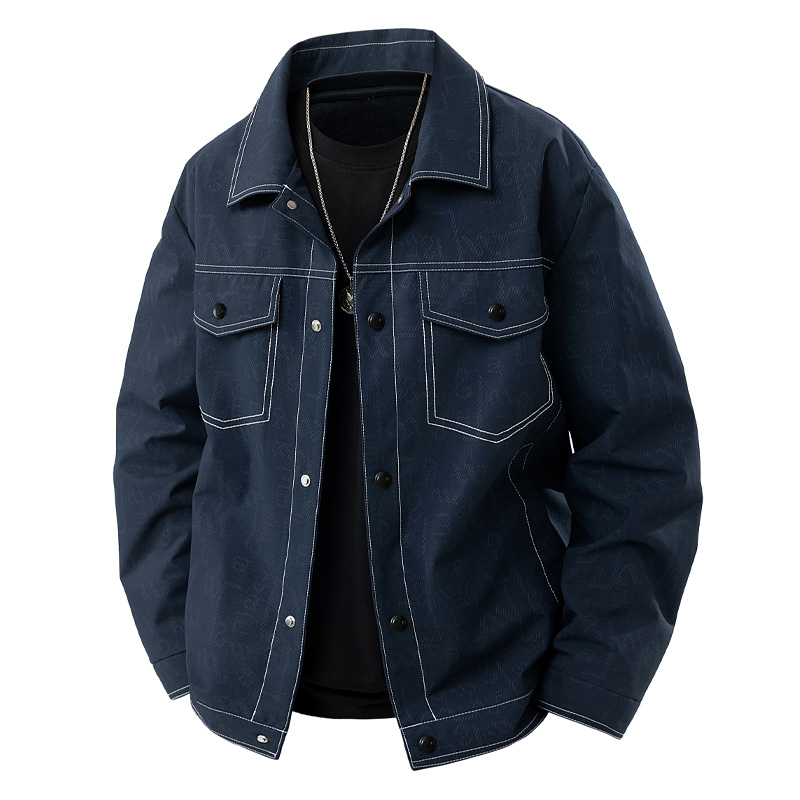 罗蒙外套男款春秋季2025新款重磅翻领工装仿牛仔夹克潮牌上衣服男