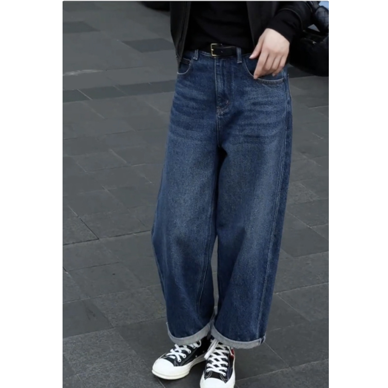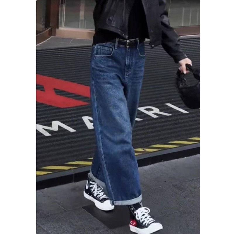 牛仔裤女2025秋季新款韩版宽松显瘦裤子高腰修身卷边直筒裤
