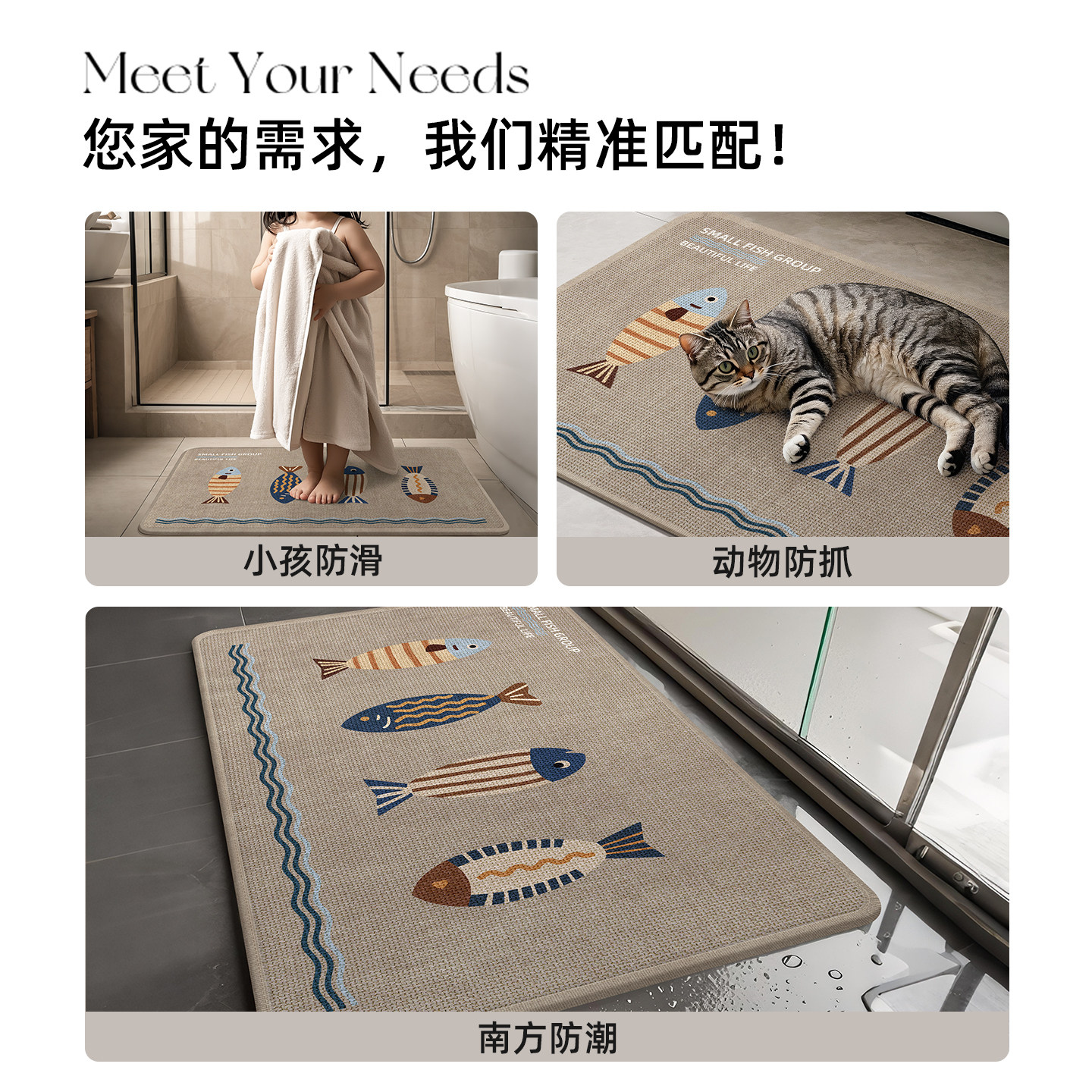 浴室地垫防滑脚垫硅藻泥洗手间厕所门口进门垫子家用卫生间吸水垫