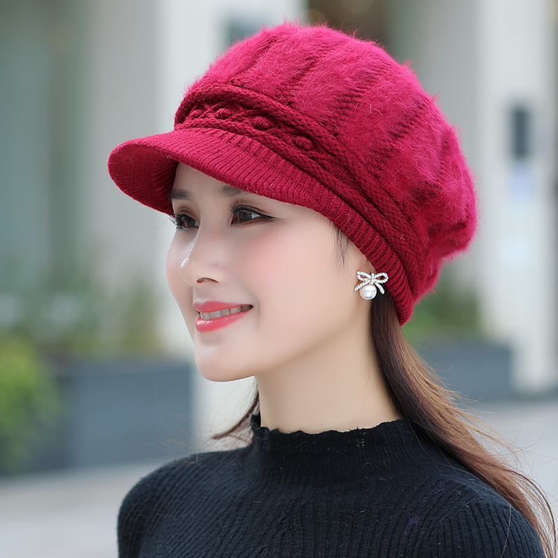 毛线帽子女秋冬百搭冬季中老年妈妈女士时尚冬天保暖加绒兔毛洋气