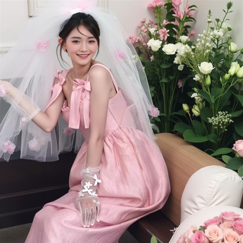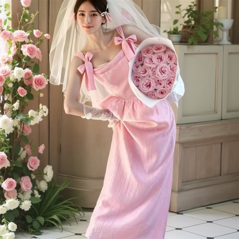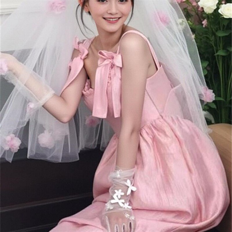 速发粉色结婚晨袍新娘法式高级感小众订婚领证登记轻婚纱礼服连衣