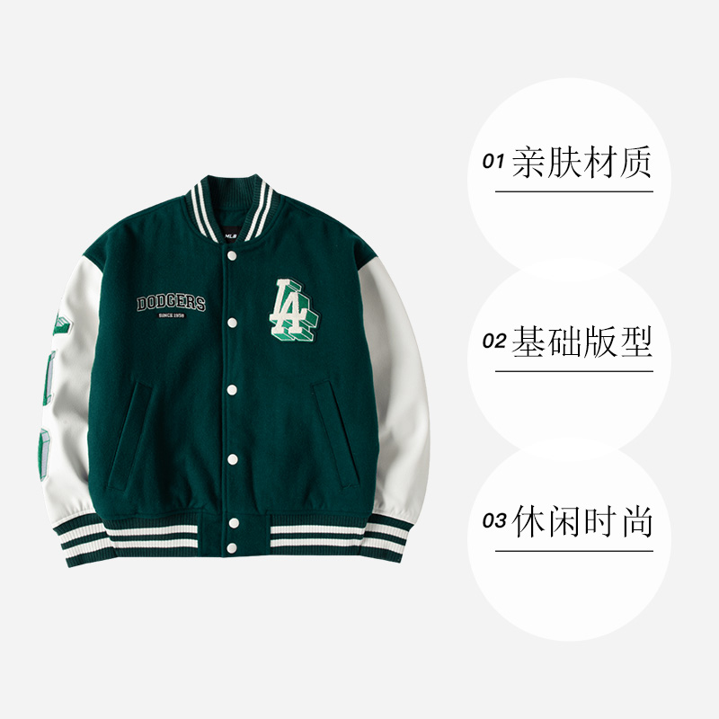 【自营】MLB外套美职棒球服男装女装学院风运动外套宽松梭织夹克