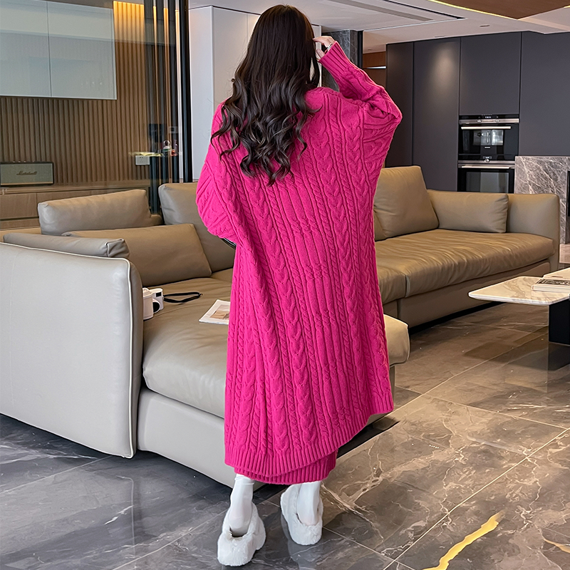 2025秋冬慵懒风别致绝美垂坠感火龙果色针织连衣裙长开衫两件套女