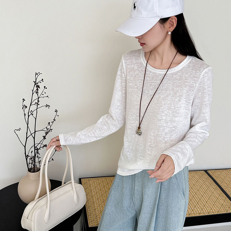 薄款内搭女t恤小衫黑白色长袖低领网纱打底衫女百搭贴身网纱上衣