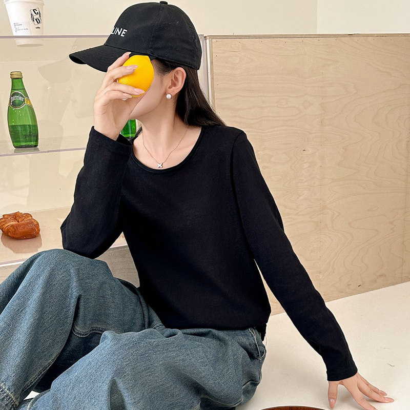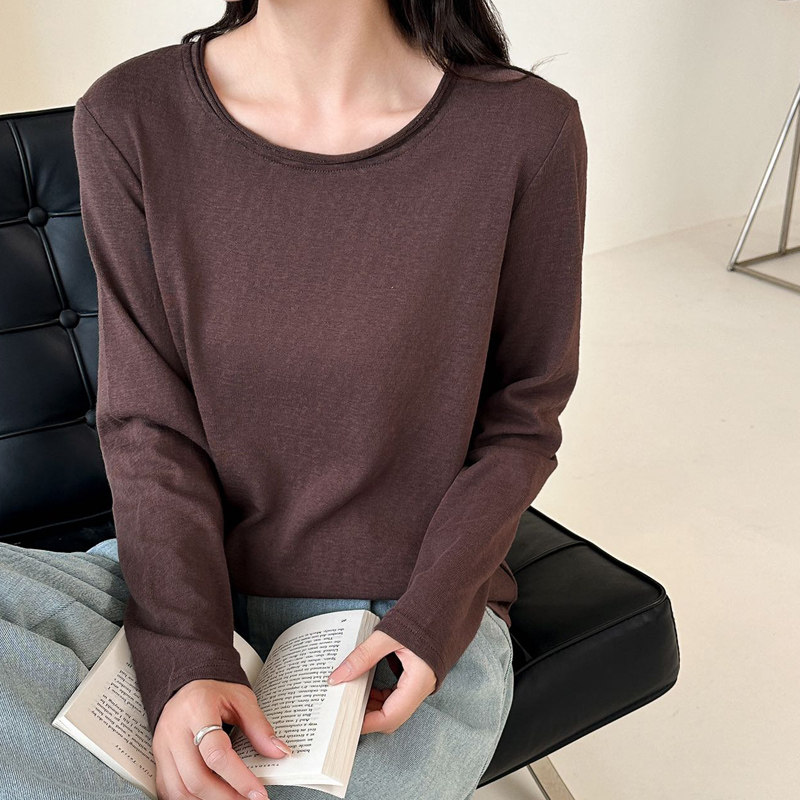2025年秋冬新款女雪花棉百搭套头纯色宽松t恤圆领打底衫上衣长袖