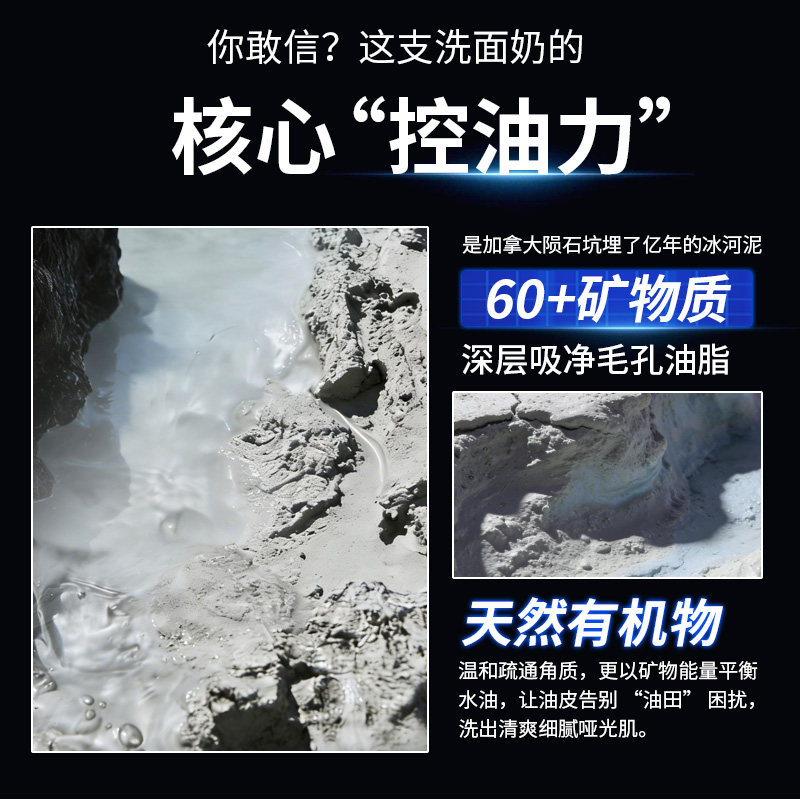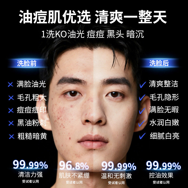 GUBAI古白官方正品洗面奶男士专用祛痘控油清洁去黑头冰河泥洁面