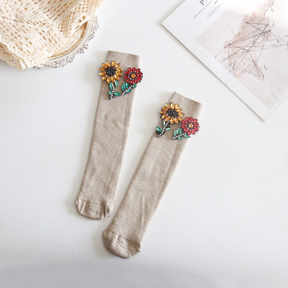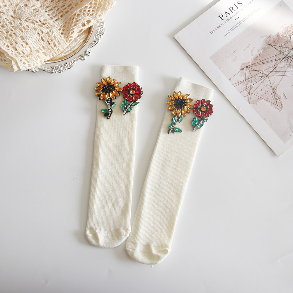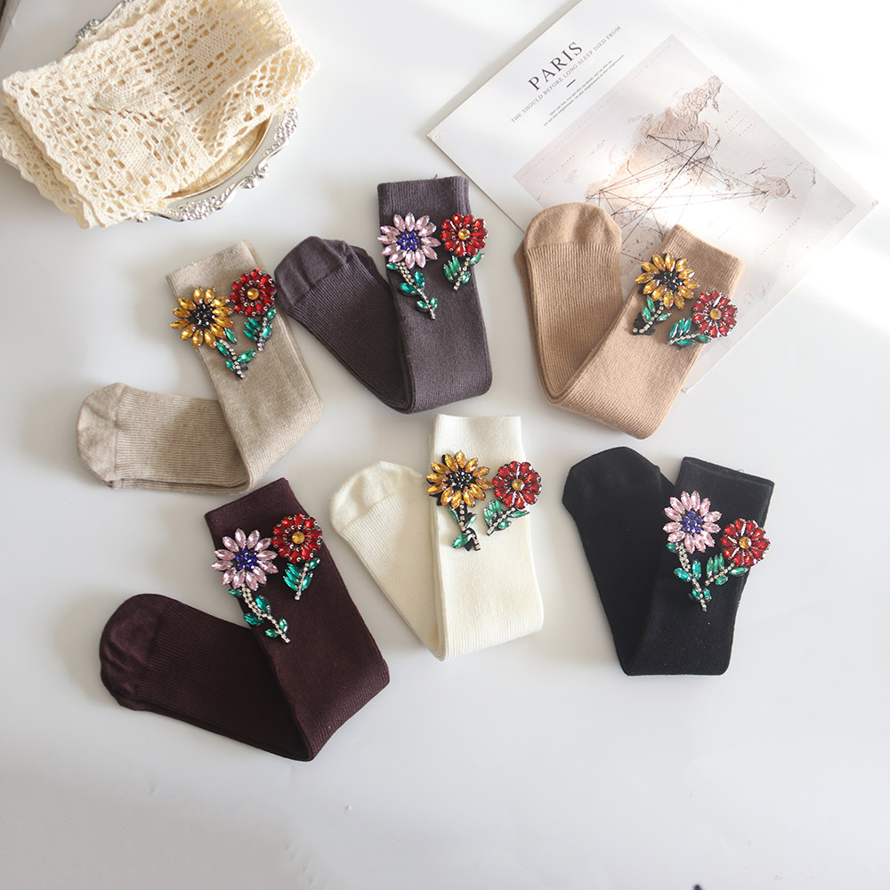 袜子女秋冬季中筒2025新款堆堆袜冬天女士个性装饰水钻花朵女士袜