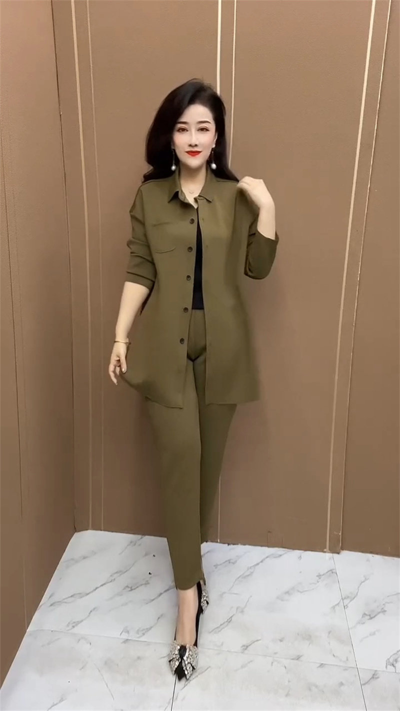 韩版时尚套装女2024春季新款简约气质中长款衬衫九分小脚裤两件套