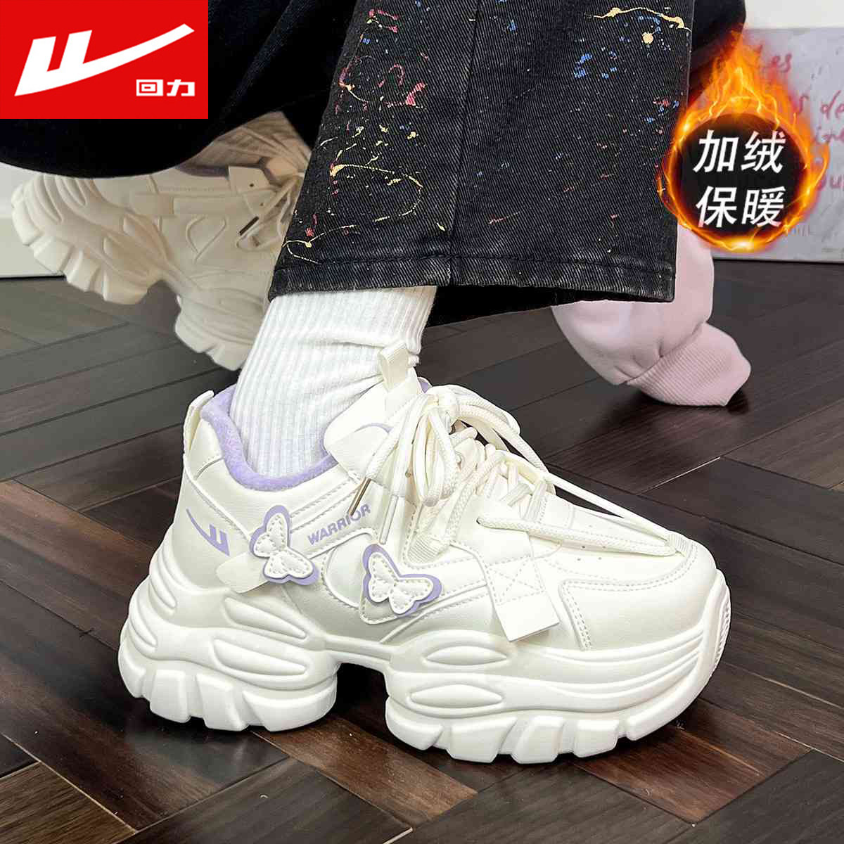 回力加绒保暖鞋子女老爹鞋2025秋冬季新款厚底休闲鞋女加厚二棉鞋