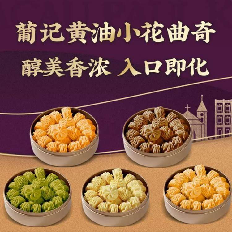 澳门葡记黄油小花曲奇饼干蝴蝶酥普记铁盒手信小金盒食品千层酥
