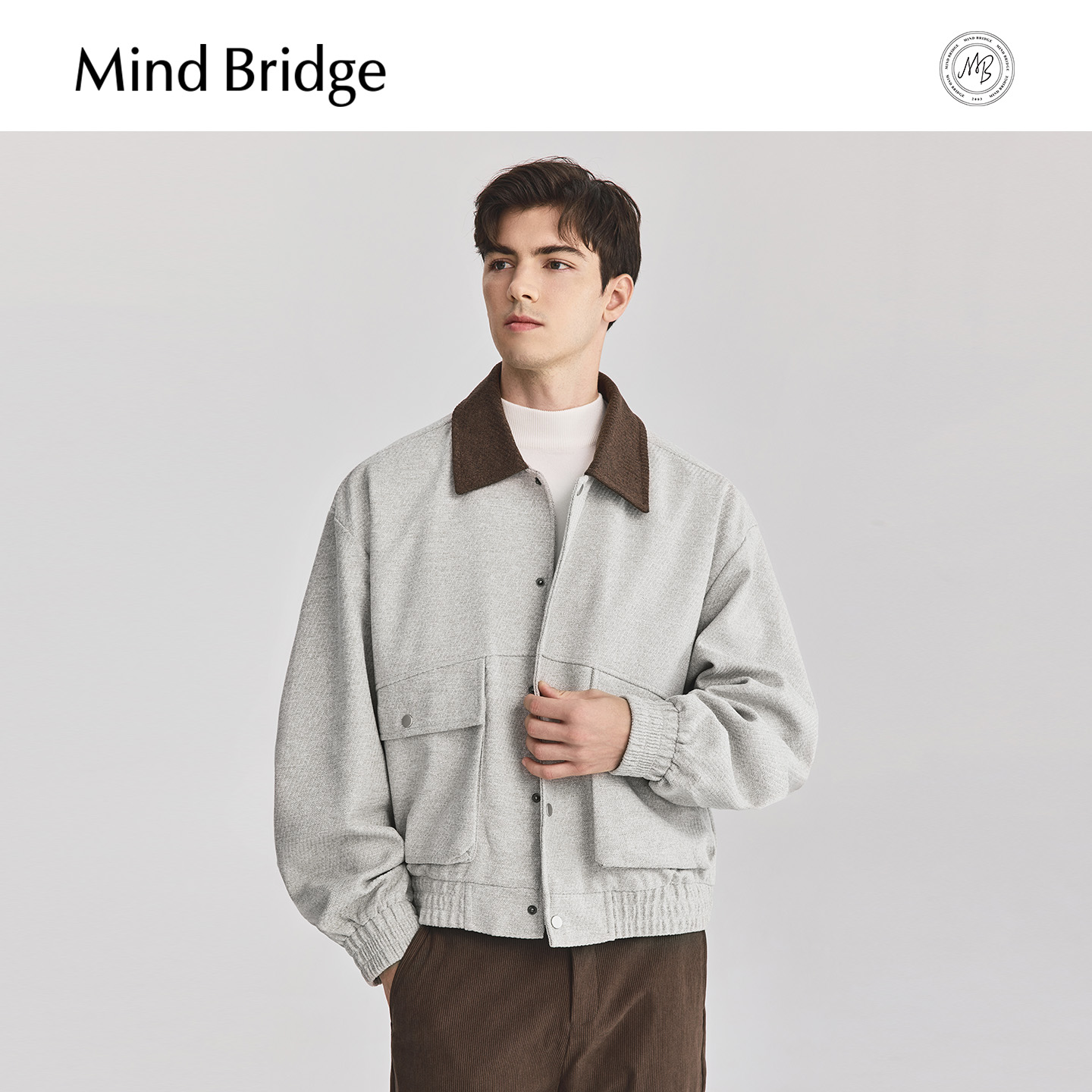 Mind Bridge2男士美式复古极简短款外套025年秋撞色翻领工装夹克
