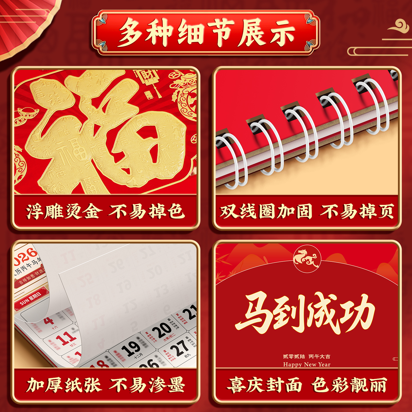 挂历2026年新款定制家用创意大号金箔福字吊牌马年礼品红色烫金月历定做年历挂墙新年黄历订制月份牌手撕日历