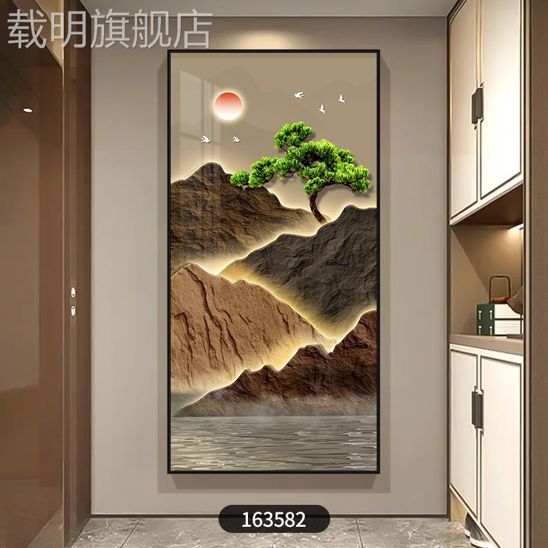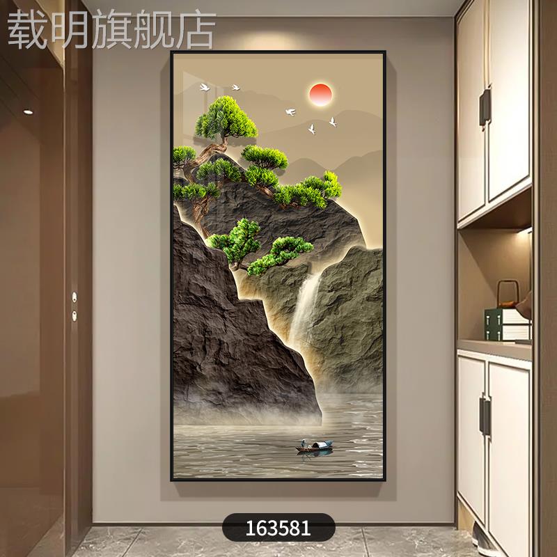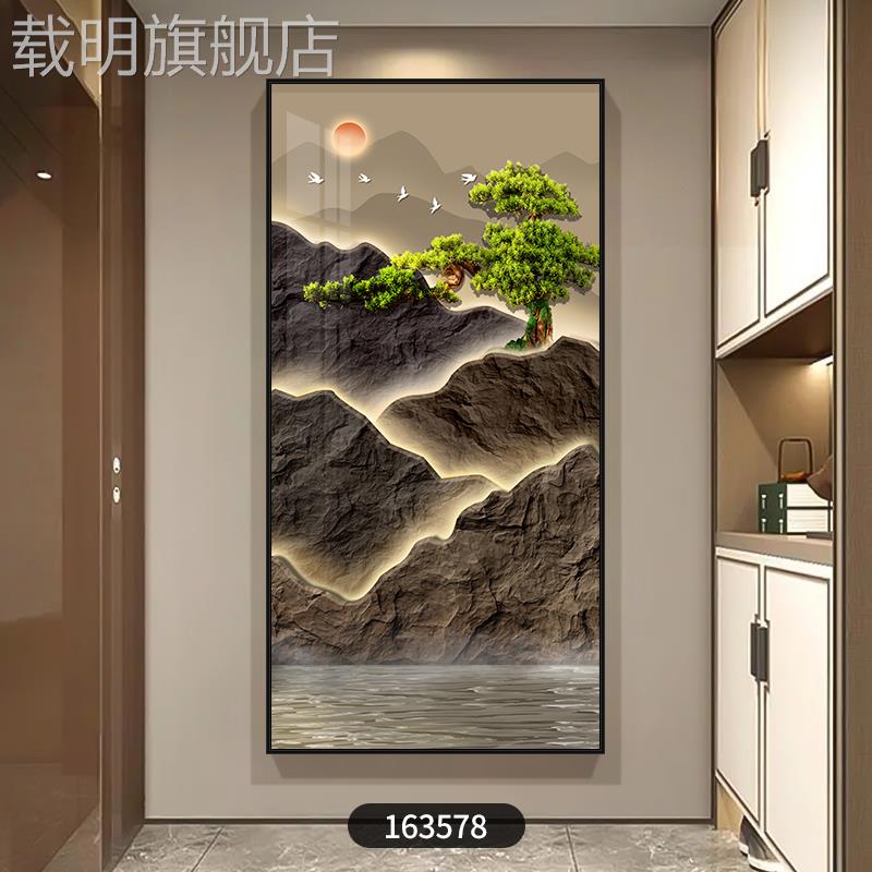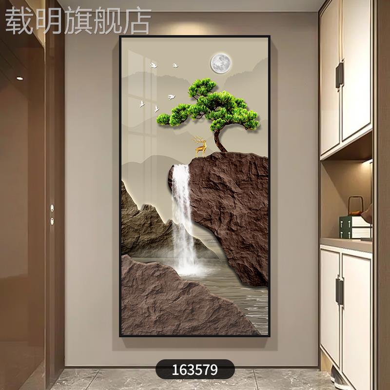 新中式玄关装饰画现代轻奢流水生财入户走廊过道挂画正对门壁画