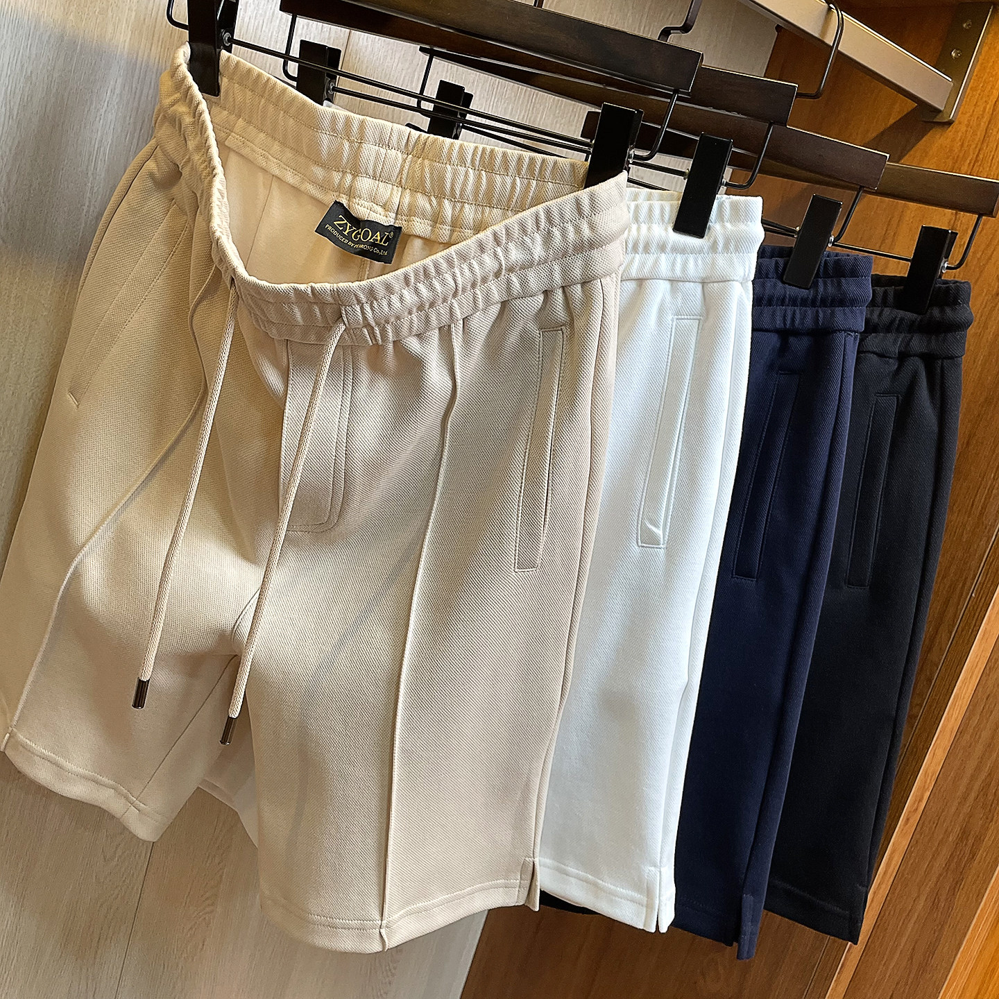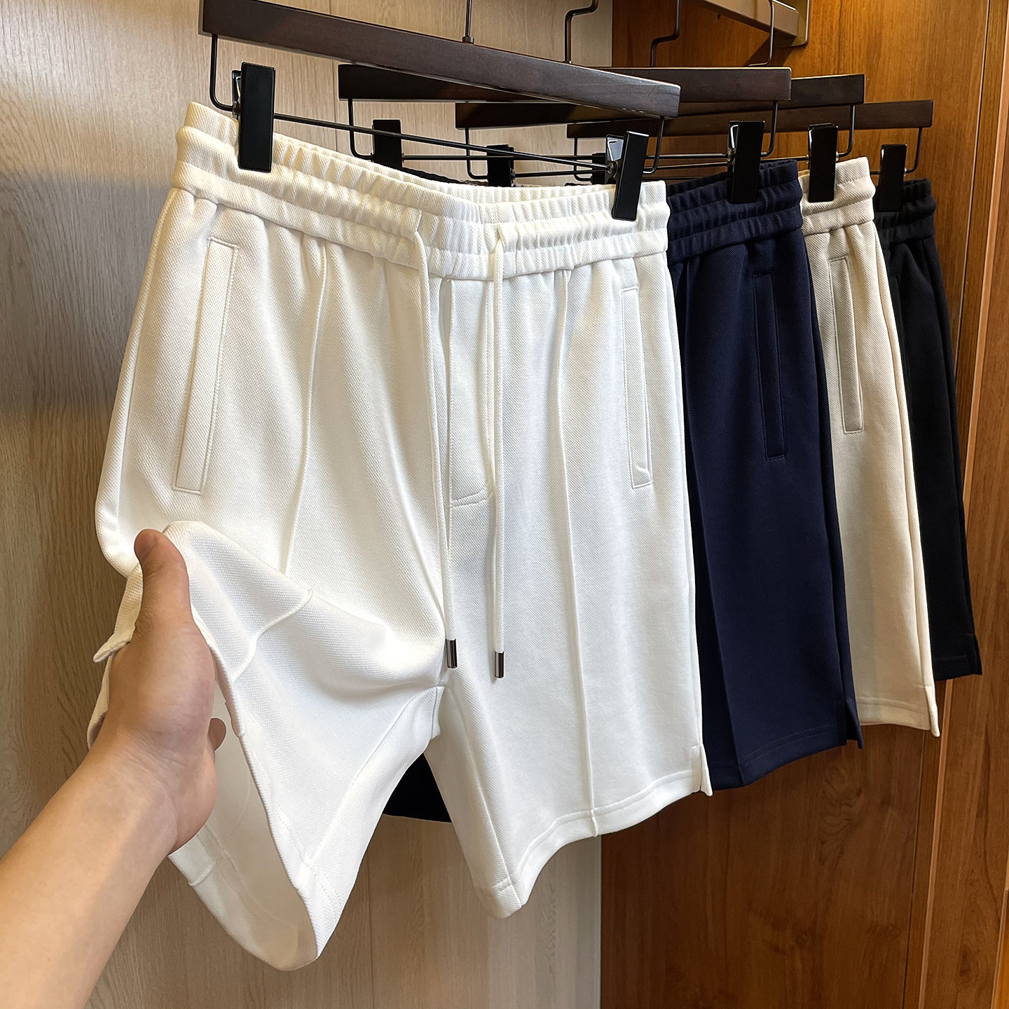 珠地肌理空气层棉中缝线短裤男夏