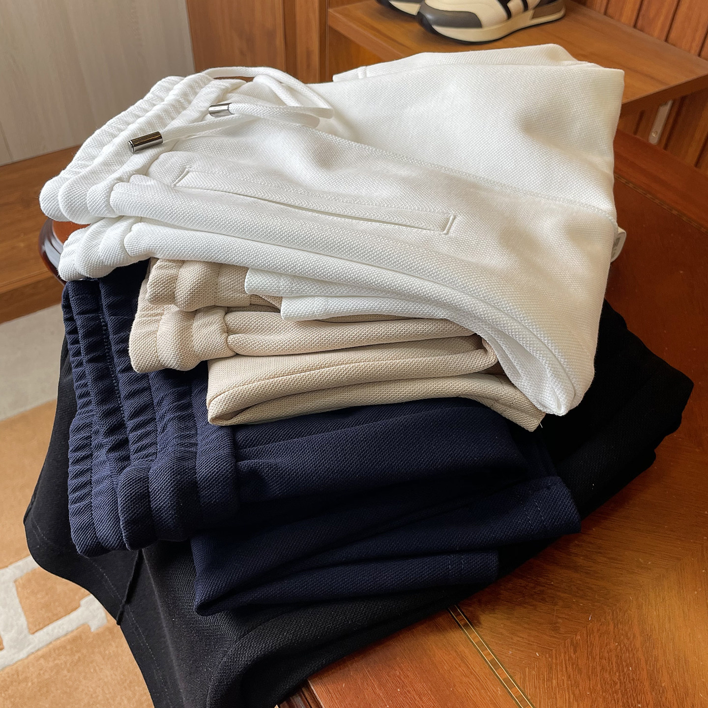 【old money气质短裤】珠地肌理空气层棉中缝线休闲五分裤男宽松