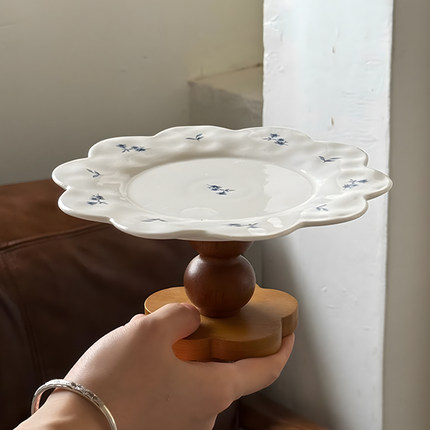 泽滕家高脚水果盘子法式中古花边蛋糕甜品碟餐桌客厅摆件ins托盘