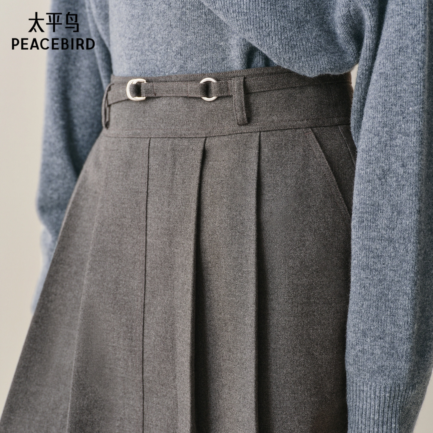【商场同款】太平鸟灰色中长裙百褶裙25新款品质半身裙A1GFF4A16