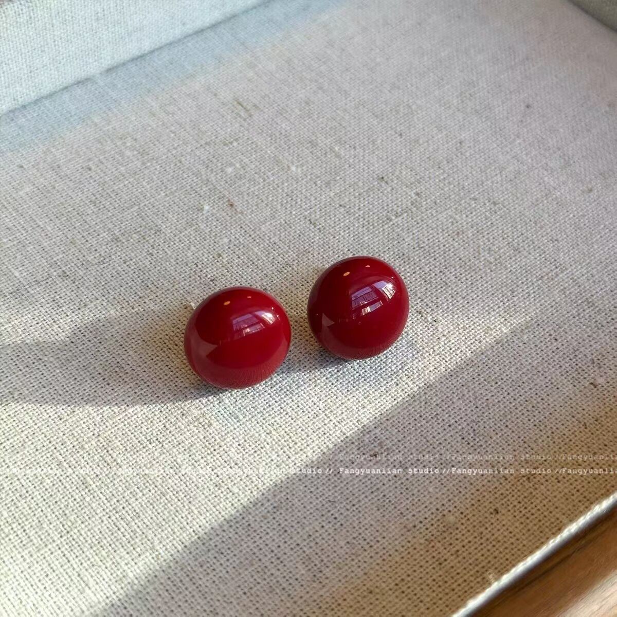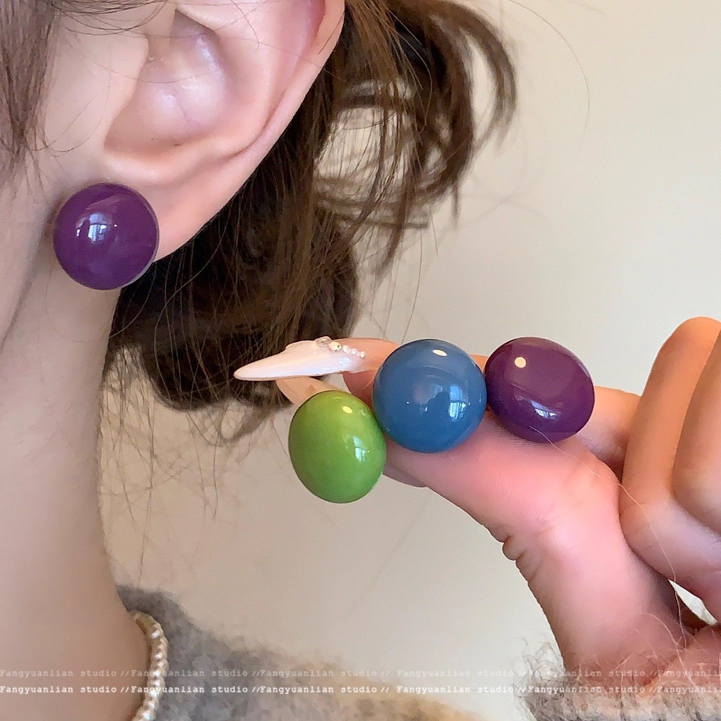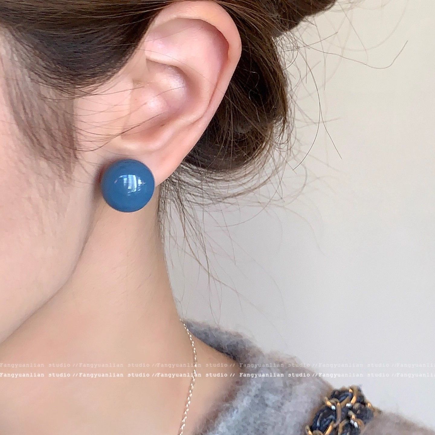秋冬彩色多巴胺馒头球球耳钉深色系显白高级感雾霾蓝耳饰耳洞耳夹