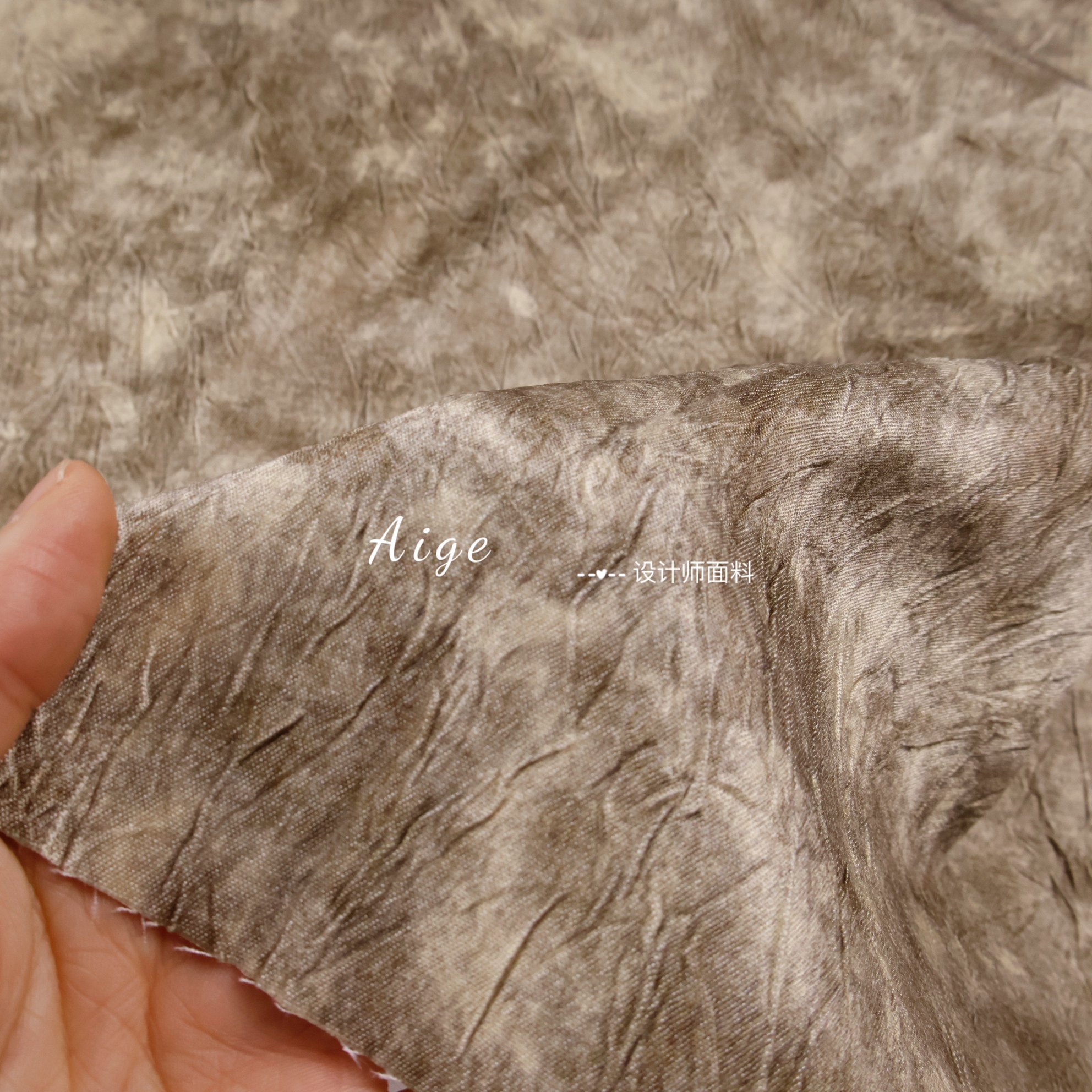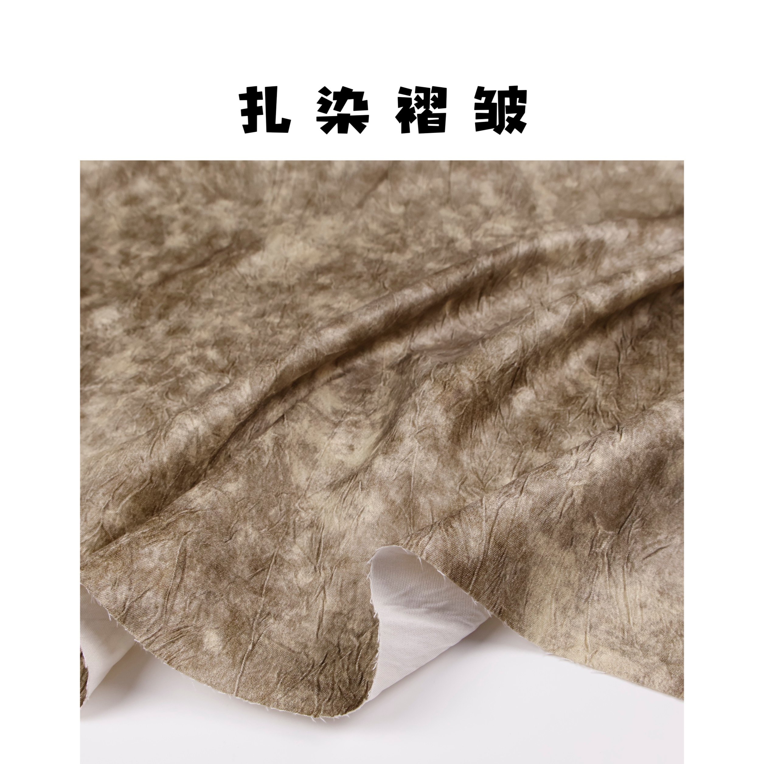 垂感亲肤弹力 咖色晕染扎染立体褶皱时装面料春夏套装设计师布料
