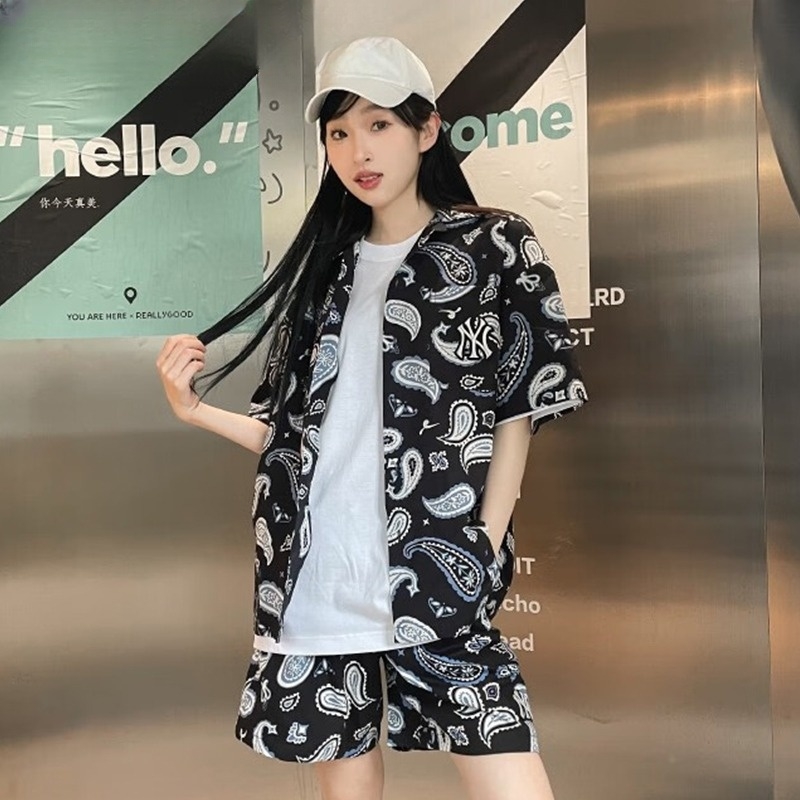 【自营】MLB男女翻领衬衫运动服腰果花系列短袖上衣3AWSI0133商场