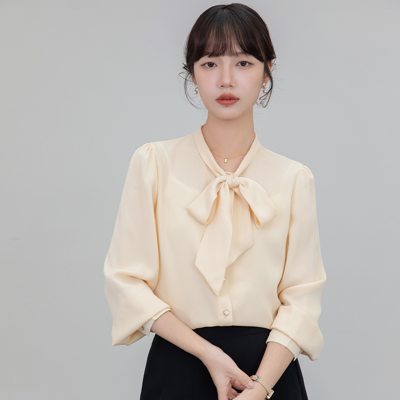 Enmei实拍蝴蝶结衬衫雪纺衫飘带法式白内搭衬衣女秋冬穿搭