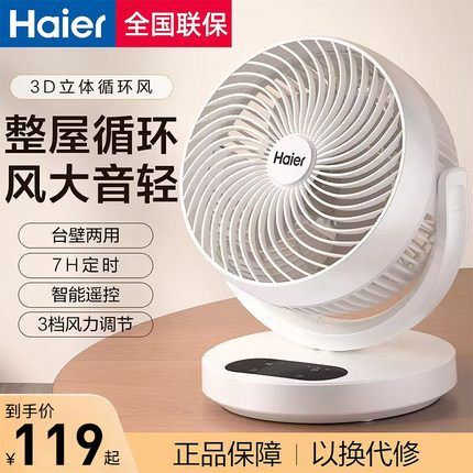 海尔空气循环扇家用电风扇台式壁挂轻音节能学生宿舍桌面小型电扇